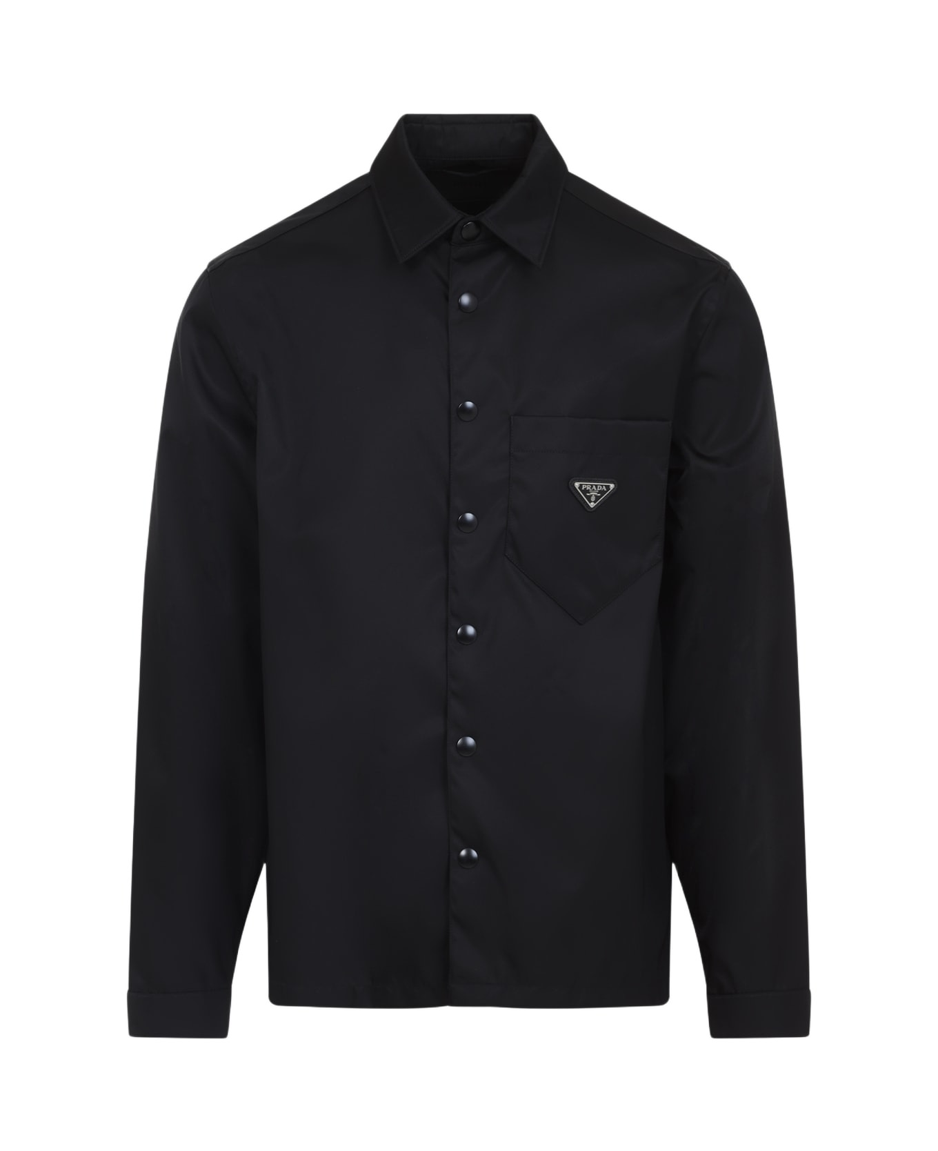 Prada Black Nylon Shirt. Pure black recycled polyester fabric, pointed collar, front buttoned fastening, chest pocket, signature metallic triangle logo on the chest, long sleeves, buttoned cuffs, straight hem, tonal stitching. Made in: Romania Color: Nero Model number: SC514S2021WQ8F0002