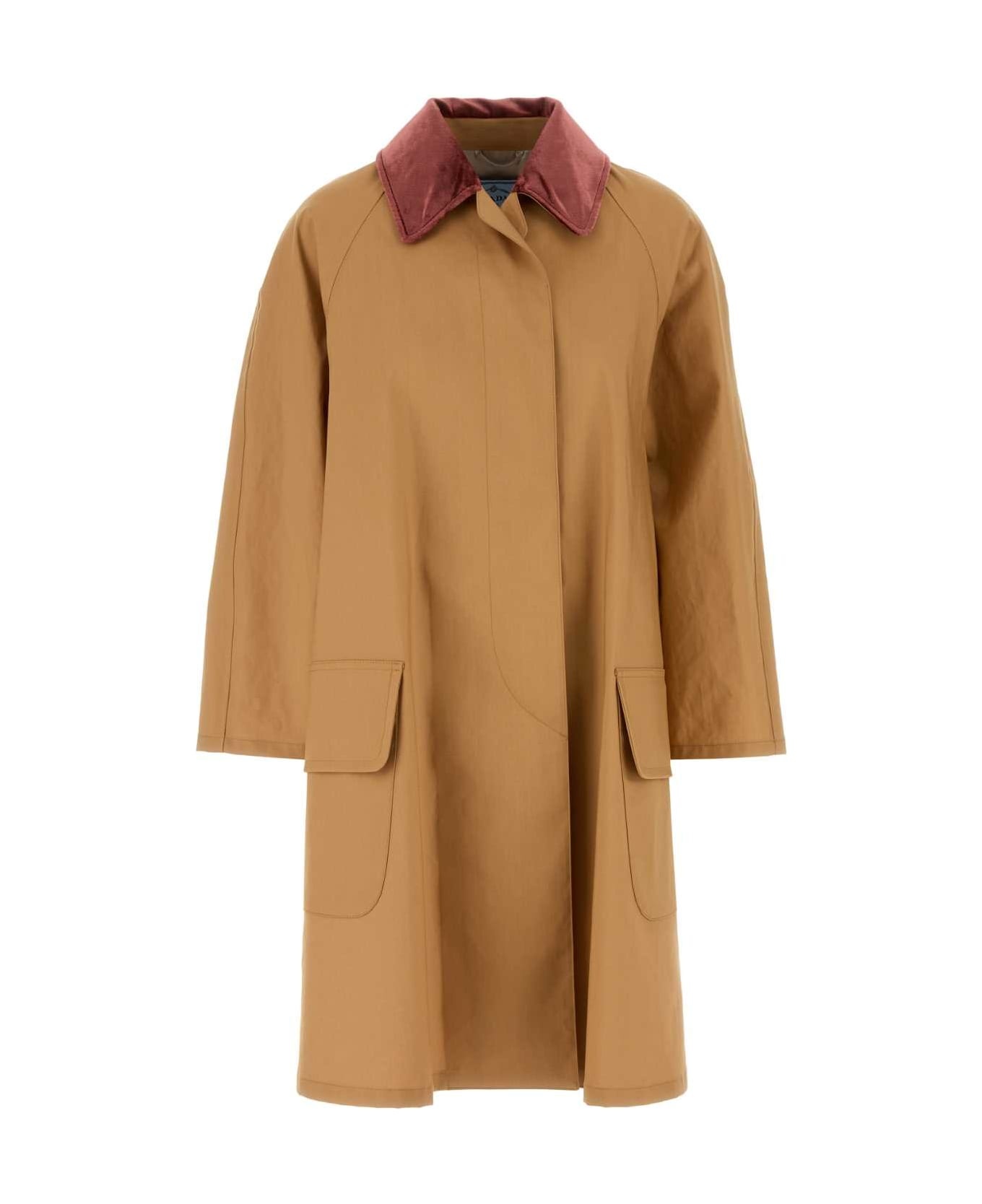 Peach Cotton Overcoat from Prada Made in: Italy Color: MIELE Model number: 292279SOOO85HF0151
