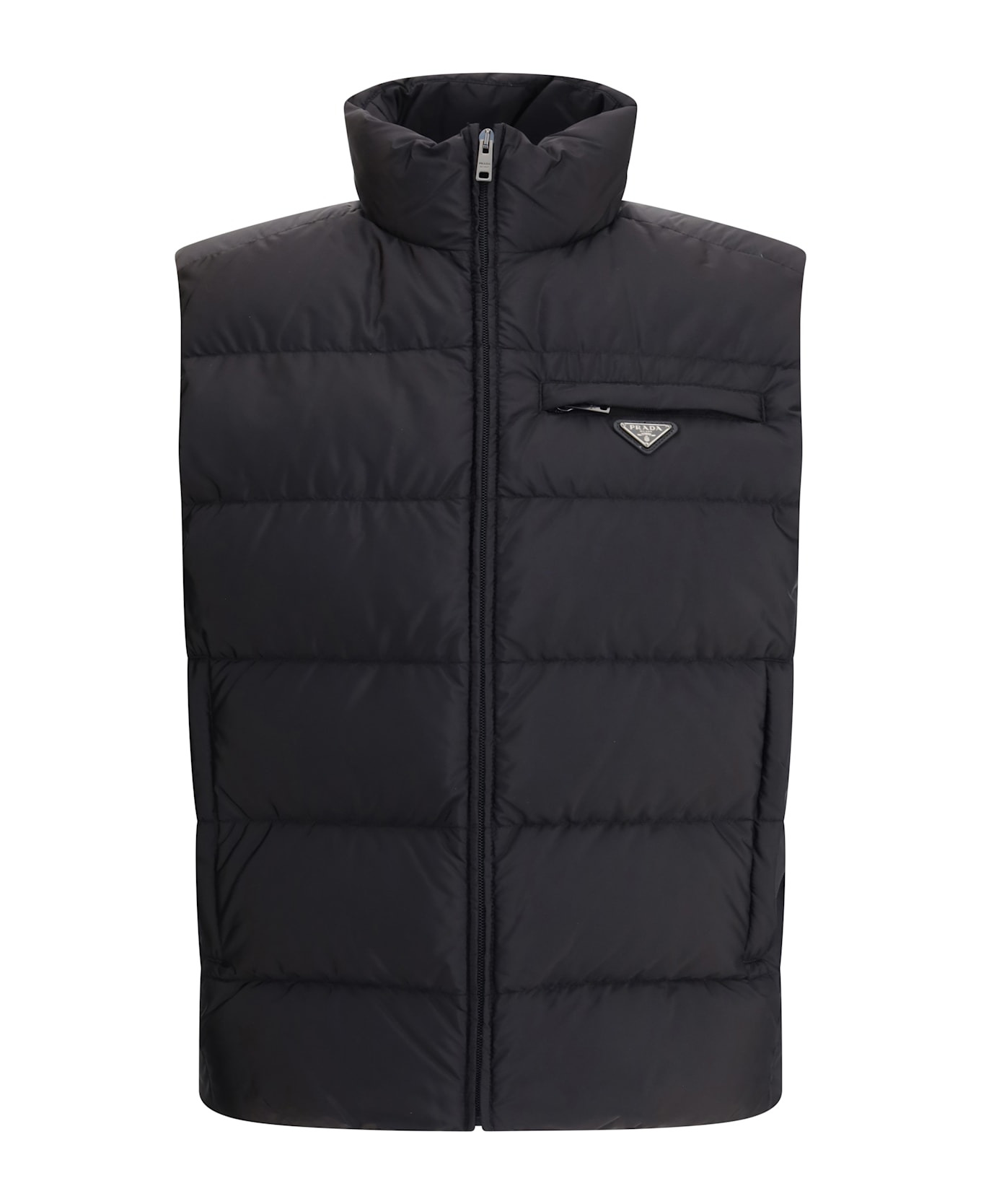 Prada's re-nylon down vest features a padded and quilted design, ideal for a functional and refined look. it features a zippered front closure, two zippered side welt pockets and the iconic triangular logo plaque applied to the front, a hallmark of the maison. Composition: 100% % Recycled Polyamide Made in: Romania Model number: SGB033SOOO1WQ9F0002