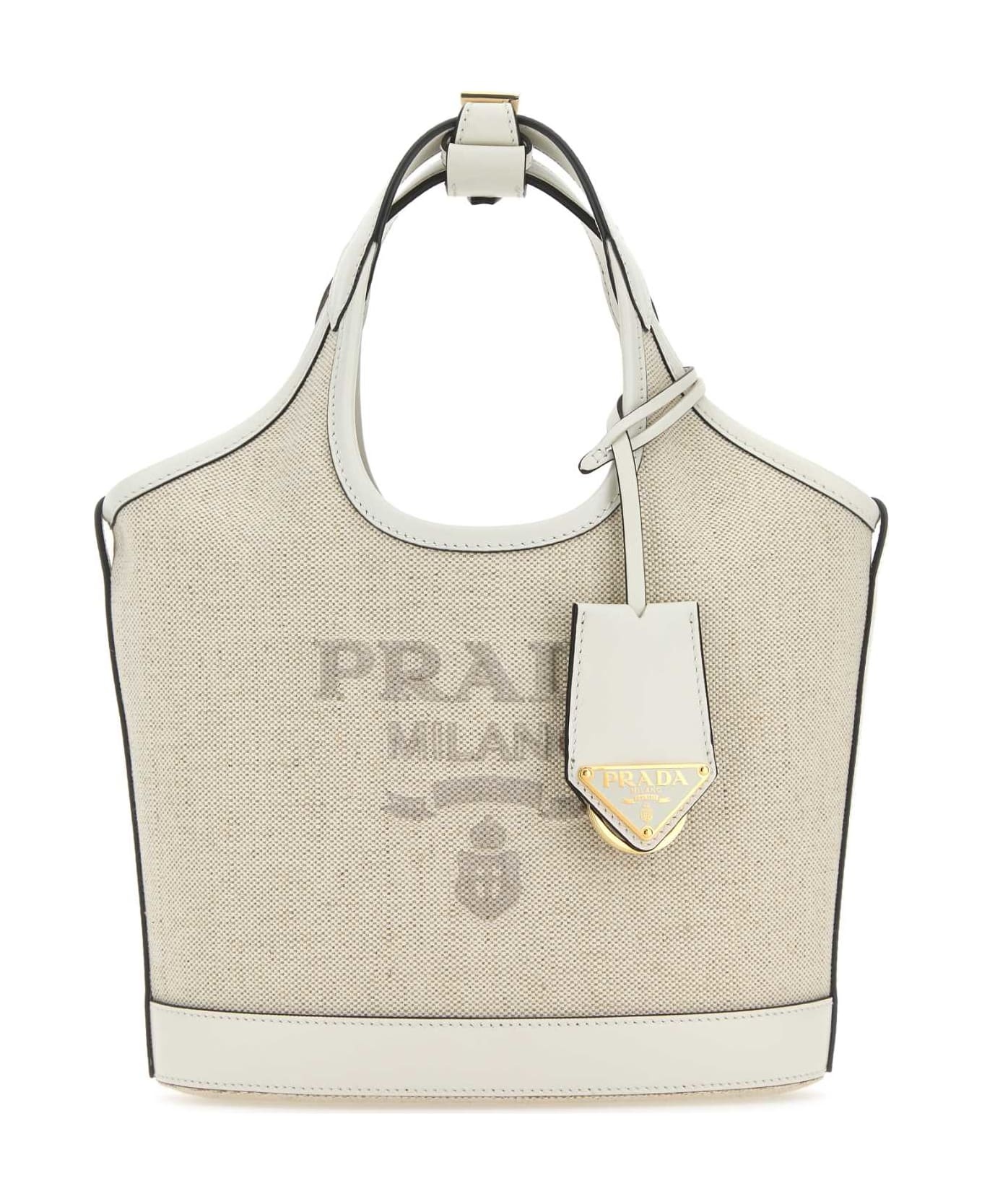 Sand Canvas Handbag from Prada Made in: Italy Color: NATURALEBIANCO Size and fit: - Width: 25 cm Height: 18 cm Depth: 10 cm Handle height: 12 cm Min shoulder strap length: 48 cm Max shoulder strap length: 55 cm Model number: 1BE074VOAH2DLIF0N86