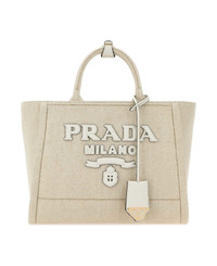 Sand Canvas Shopping Bag from Prada Made in: Italy Color: NATURALEBIANCO Size and fit: - Width: 31 cm Height: 24 cm Depth: 13 cm Handle height: 12 cm Model number: 1BG474VOHO2DLIF0N86