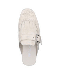 Shuffle fringed leather mules