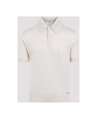 Prada Beige Silk Polo. Crafted from pure beige silk. Polo collar, front three-button closure, short sleeves, black contrasting logo inlay at the front edge, fine ribbed edges. Straight hem. Made in: Italy Color: Naturale Model number: UMB925SOOO16AIF0018
