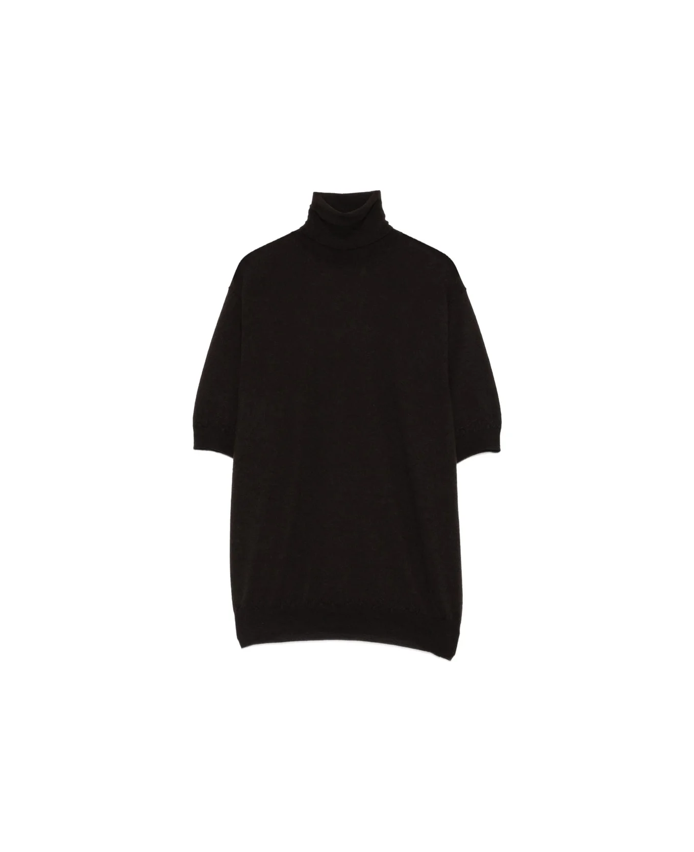 brown short sleeves plain knit ribbed trims triangle logo Made in: Italy Color: BROWN Model number: P26563S