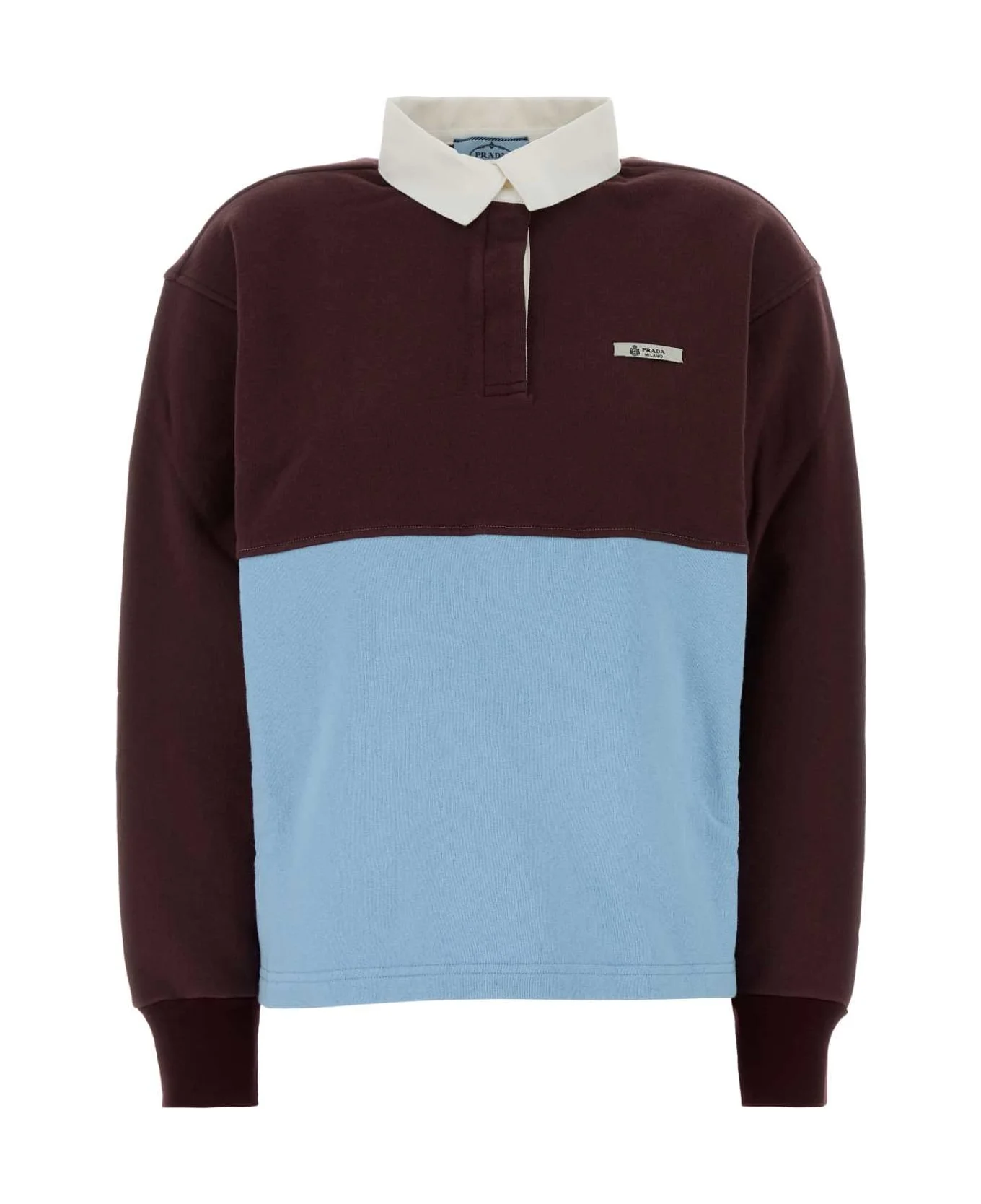 Two-tone Cotton Oversize Polo Shirt from Prada Made in: Romania Color: BORD+CELESTE+DESERTO Model number: 134726SOOO186JF05AX