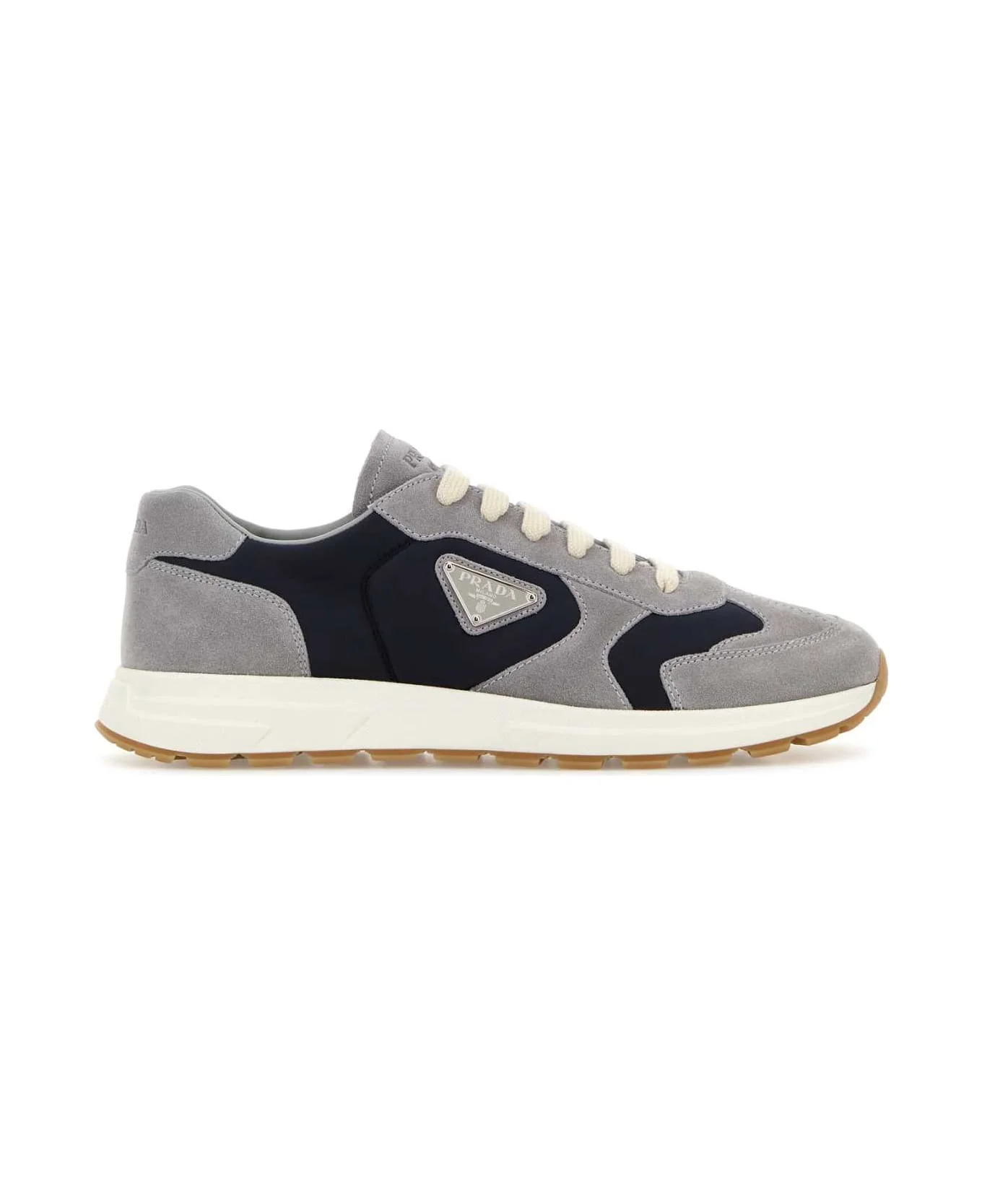 Two-tone Suede And Re-nylon Prax Sneakers from Prada Made in: Italy Color: GRANITO+BLU Model number: 2EE455FG000LOWF0H2U