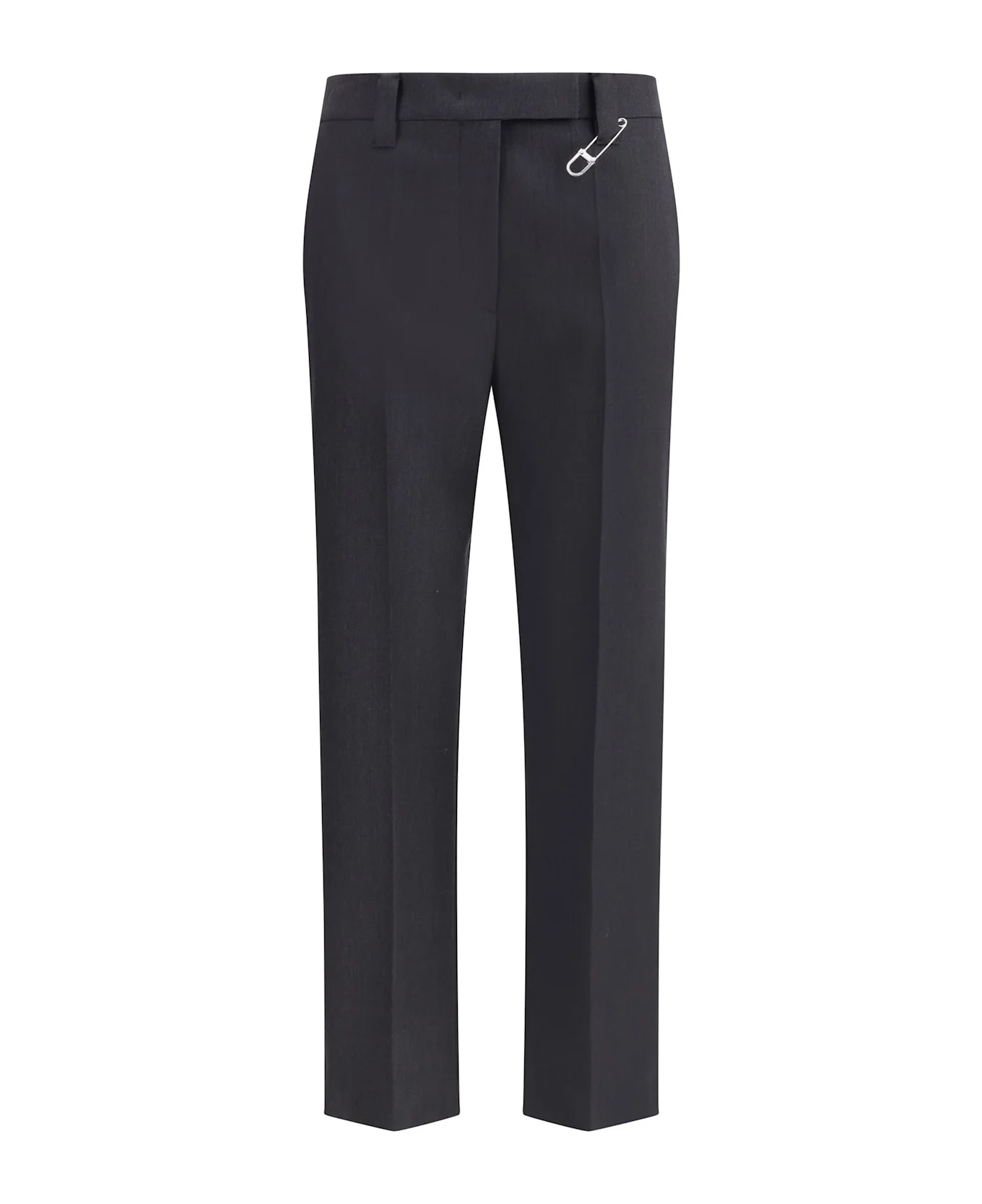 Prada's virgin wool pants combine sartorial elegance with contemporary spirit details. featuring a high waist and a straight-leg silhouette, they feature a front zip-and-hook closure, belt loops at the waist and an original maxi safety pin detail. completing the design are two side welt pockets and two back pockets for the perfect balance of functionality and style. Composition: 100% % Fleece Wool Made in: Italy Model number: P267JSOOO170PF0308