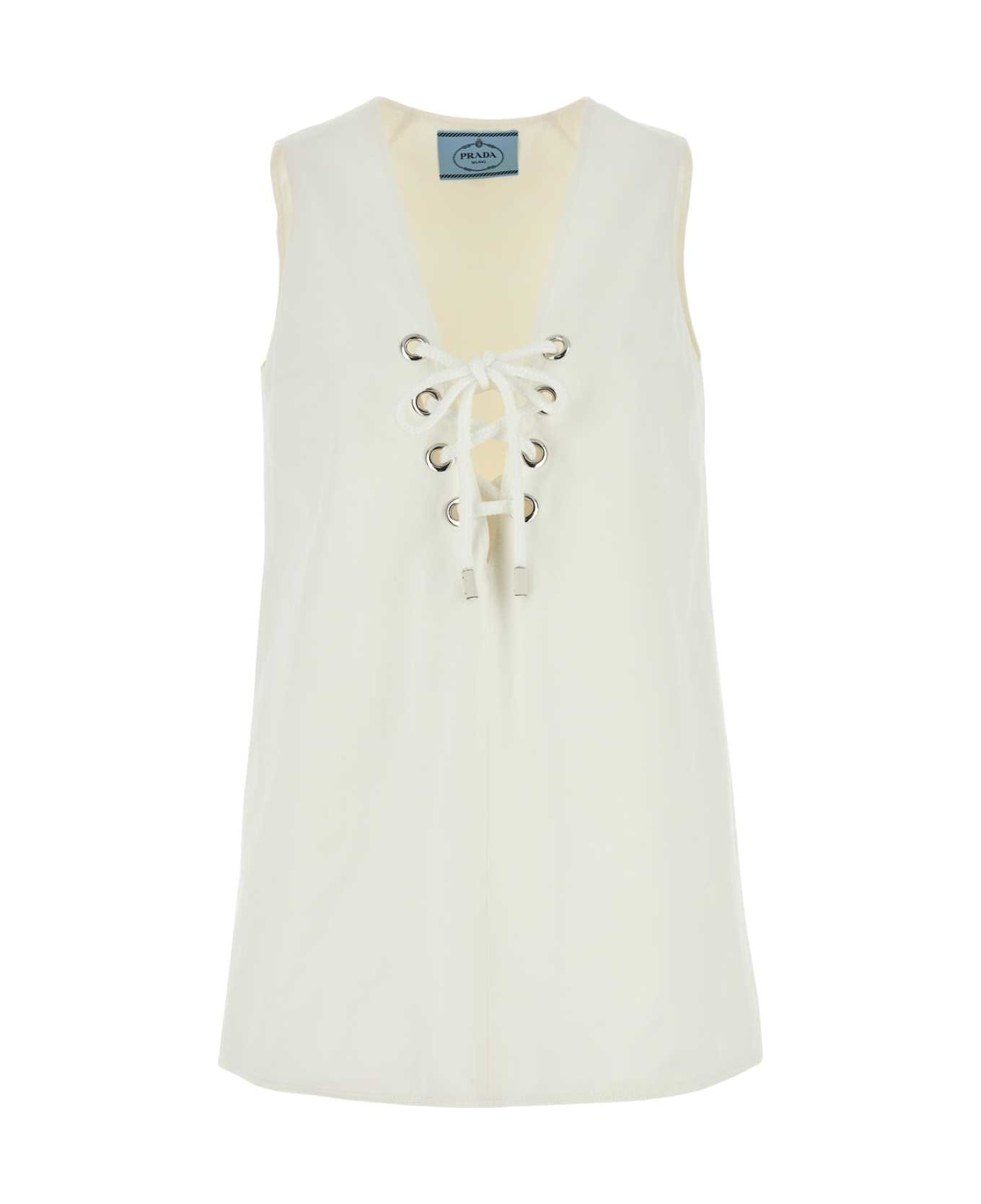 White Cotton Mini Dress from Prada Made in: Italy Color: BIANCO Model number: P3P00SOOO16E2F0009