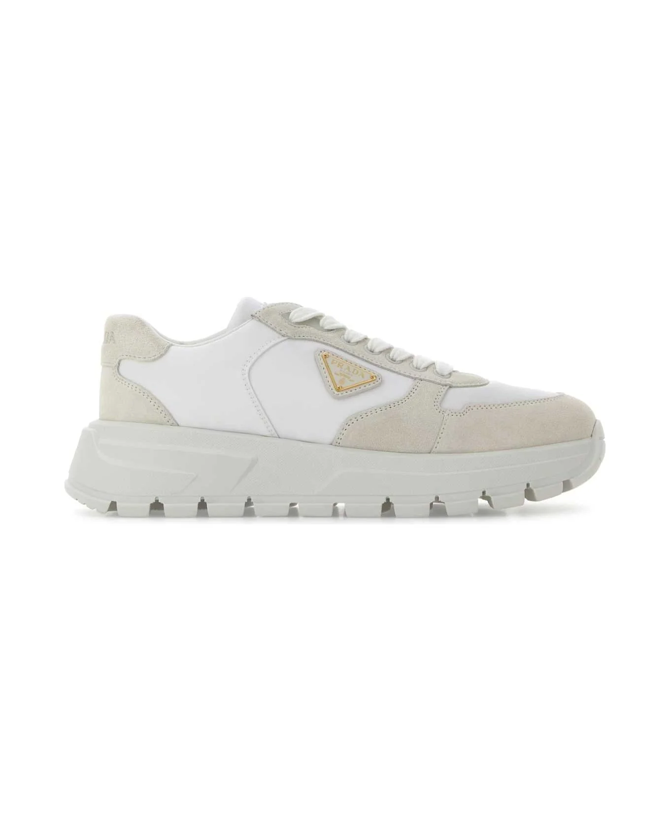 White Suede And Re-nylon Sneakers from Prada Made in: Italy Color: BIANCO Model number: 1E021OF045D7CF0009