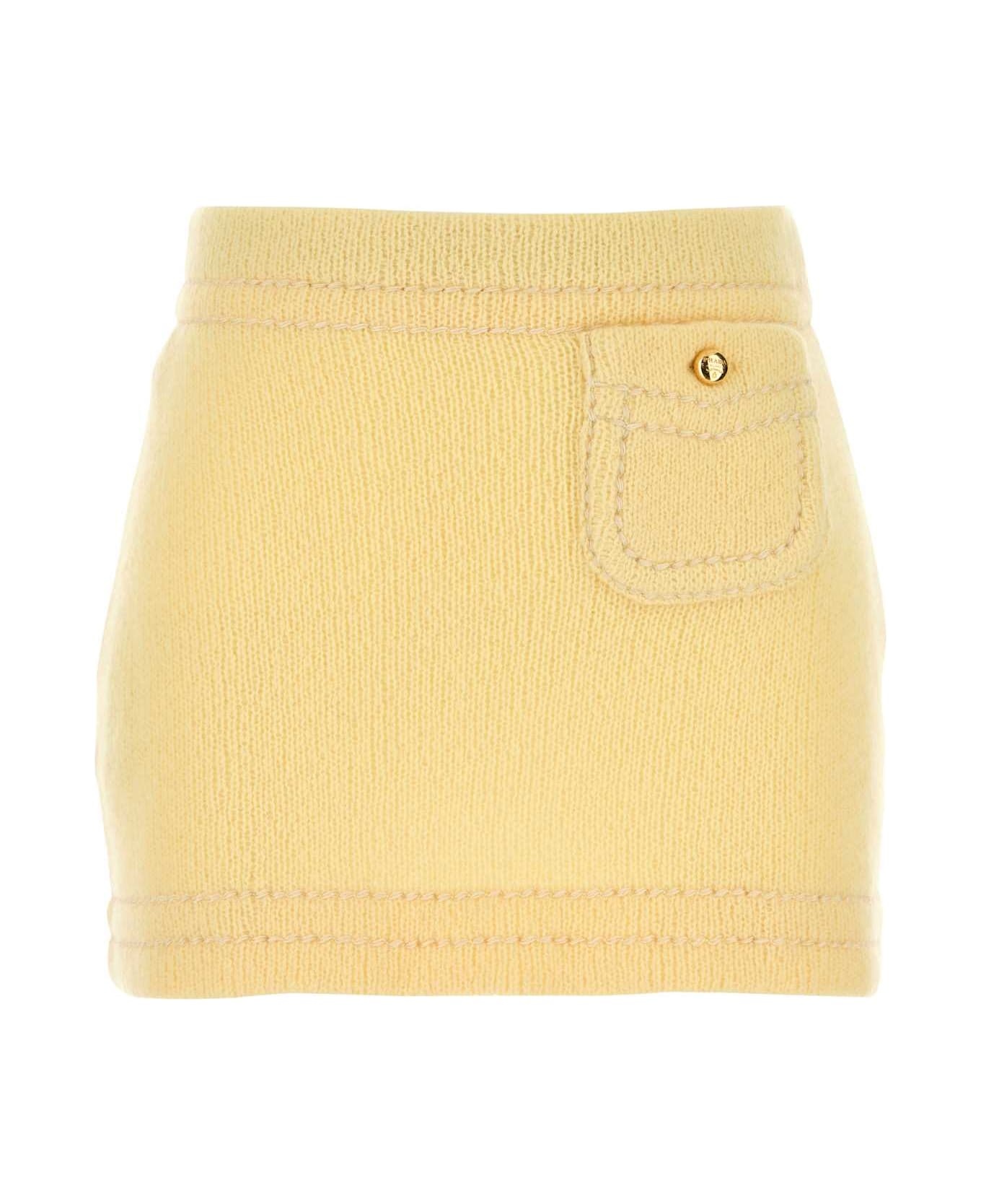 Yellow Cashmere Mini Skirt from Prada Made in: Italy Color: CREMA Model number: 21480SOOO1ISXF0061