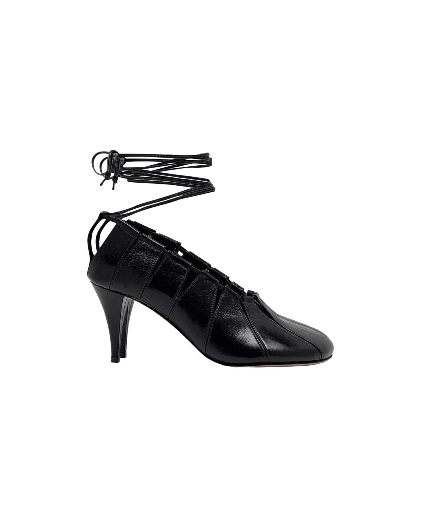 Proenza Schouler Glove hinge pumps in leather, rounded toe, adjustable side cording, anckle wrap. GTIN code: SH253067 Made in: Italy Color: Black Model number: SH253067001