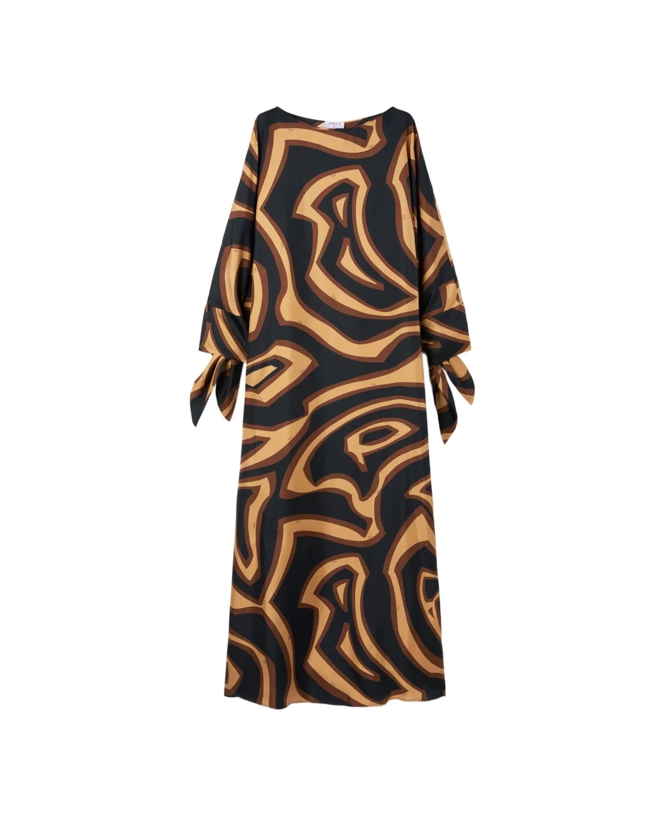 brown wave print long sleeves tie-fastening cuffs boat neck Composition: Natural (other)->silk100. , 0% Made in: Italy Color: Brown Model number: 5URL655U741049