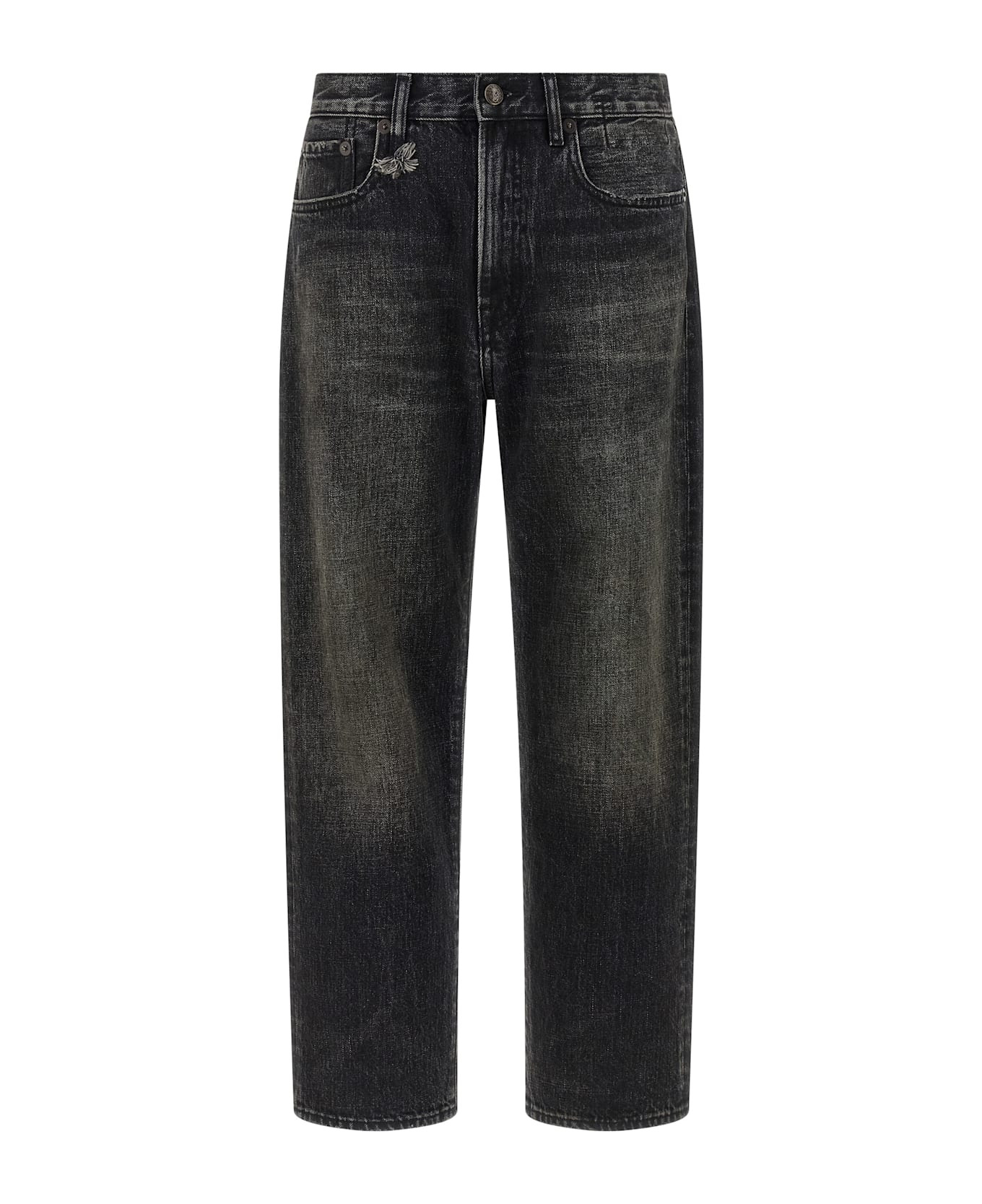 'BF' used-effect stonewashed cotton denim jeans, front zip and button closure, five pockets, straight leg, back leather logo tag. Composition: 100% cotton Made in: China Color: Black Size and fit: - true to size fit Model number: R13W5083D352BASHBURYBLACK