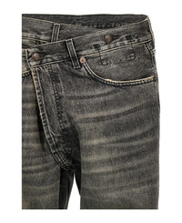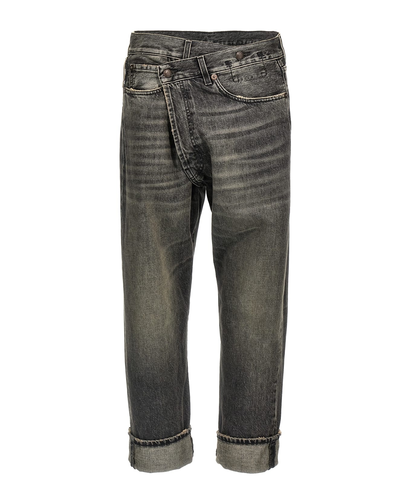 'Cross Over' jeans in delave cotton denim with asymmetric button closure, five pockets, leather logo tag, turn-up hem. Composition: 100% cotton Made in: Italy Color: Gray Size and fit: - true to size fit Model number: R13W2048549ALEYTONBLACK