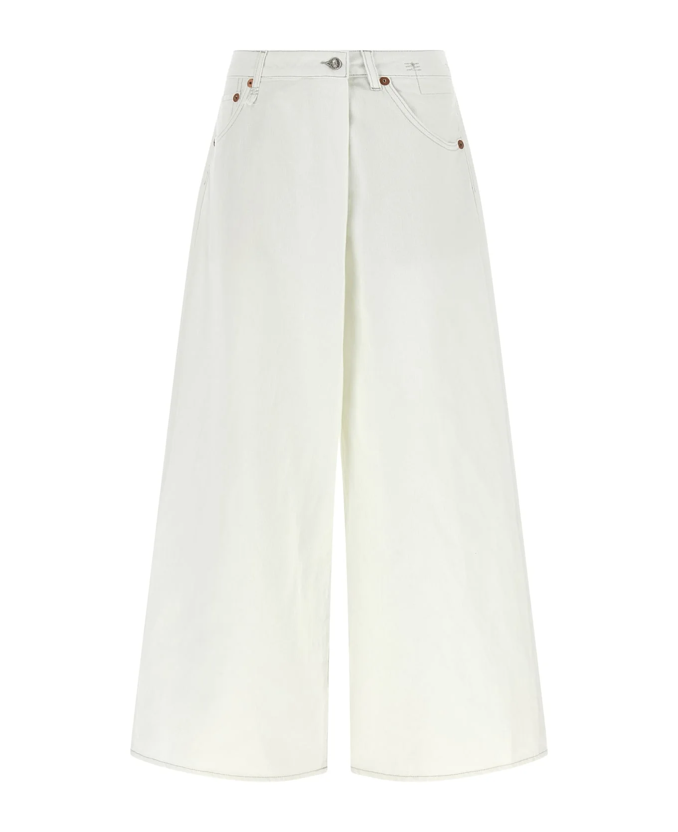 'Nico Wrap' jeans in garment-dyed cotton denim with contrast stitching, extra wide leg, asymmetric wallet closure with buttons, low crotch, five pockets, back logo tag. Composition: 67% cotton 33% paper Made in: China Color: White Size and fit: - true to size fit Model number: R13WD219D451BWORNWHITETWILL