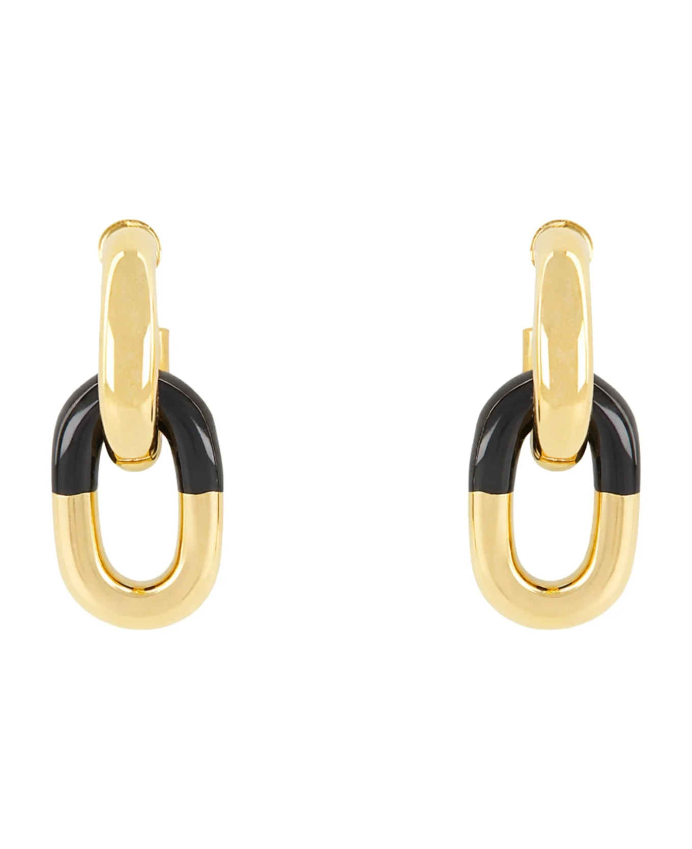 Category: Earrings Item: X Link Brand: Rabanne Color: Gold and Black Closure: butterfly Details: black enamel finish SIZE AND MEASUREMENTS Size: 3x5 cm Made in: Italy Color: Black Light Gold Model number: 26PBB0024MET854|098M011