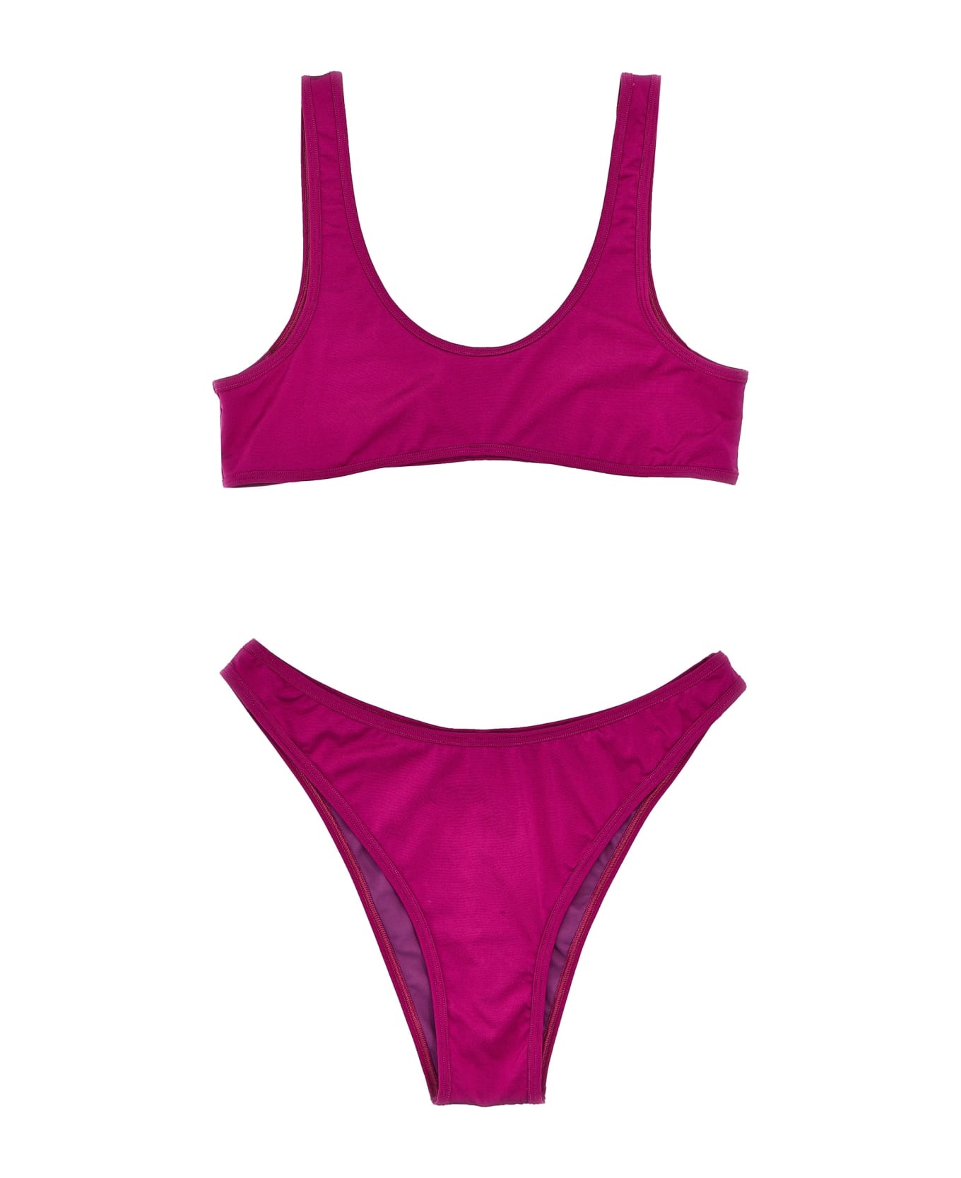 'Coolio' shiny fabric bikini with top bra and high waist Brazilian briefs. Composition: 78% polyamide 22% elastane Color: Purple Size and fit: - true to size fit Model number: COOLIOBIKINISETSHINYPURPLE