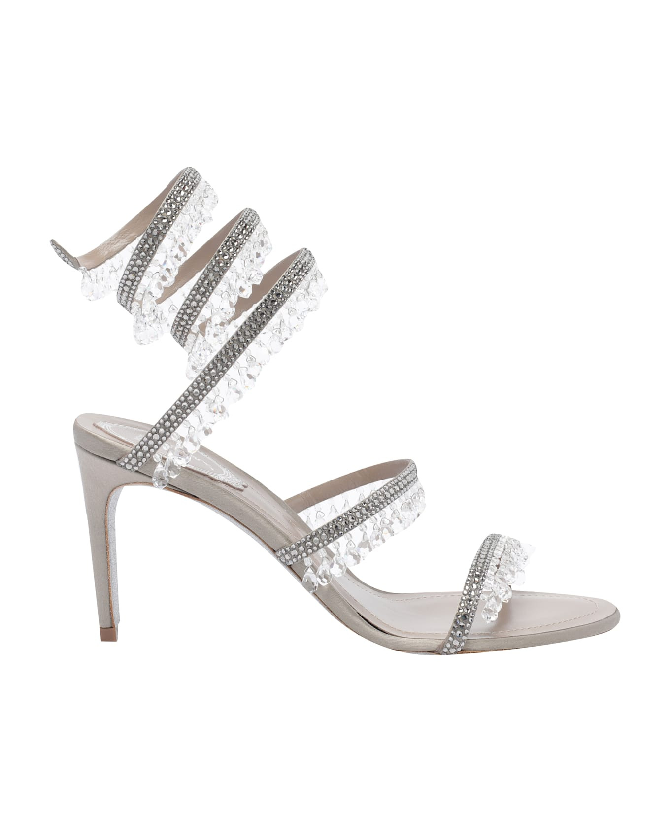 Rene' Caovilla taupe Chandelier sandals, round toe, crystals detail around the ankle Composition: 100% Fabric With Strass/leather Sole Made in: Italy Color: Grey Size and fit: - Heel: 8 cm Model number: C12535080R001W103