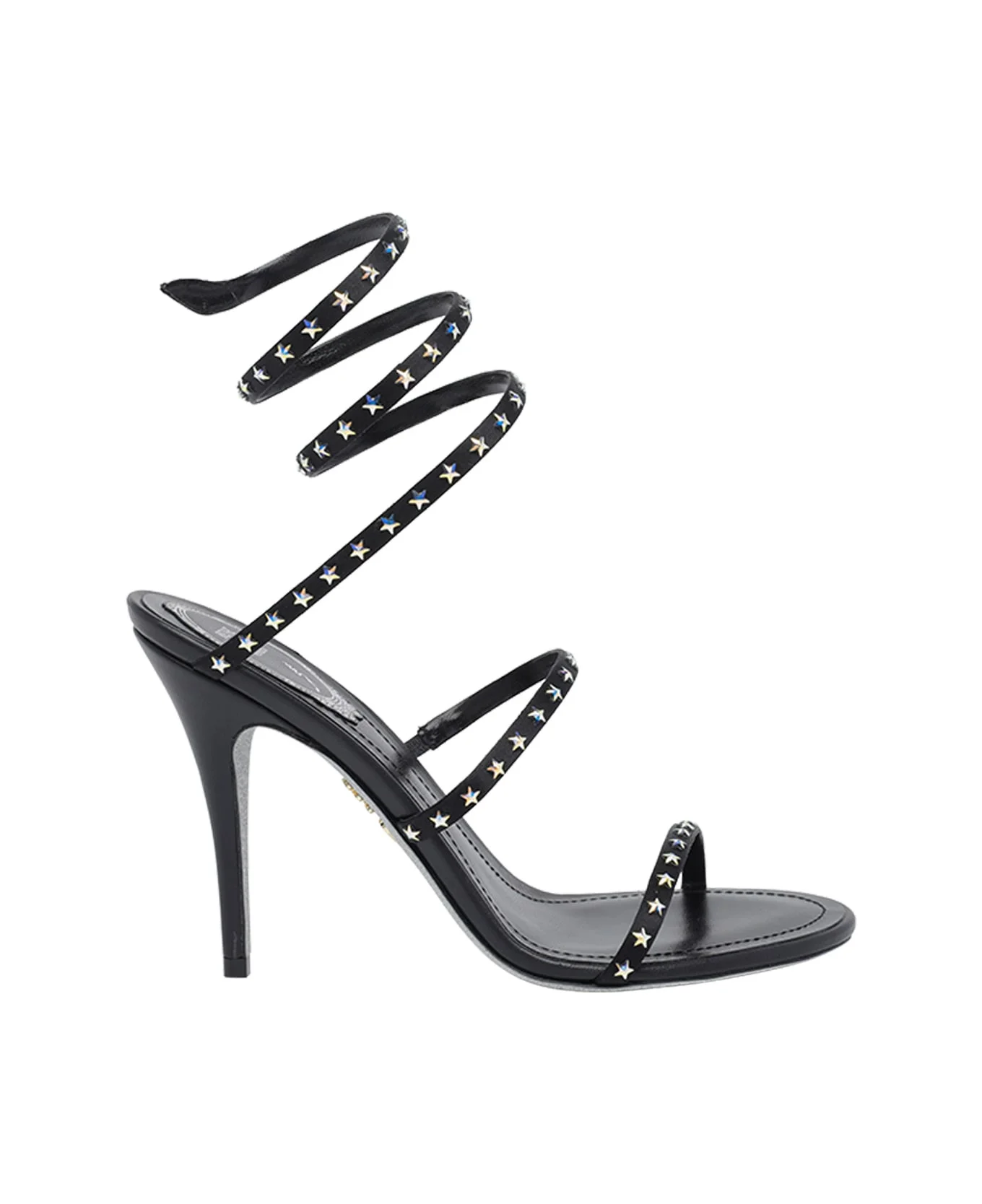 Rene' Caovilla black Cleo pump sandals round toe, stars allover Composition: 100% Calf Leather/leather Sole Made in: Italy Color: Black Size and fit: - Heel: 10 cm Model number: C12699100R0019999