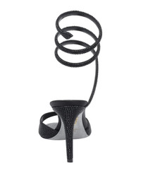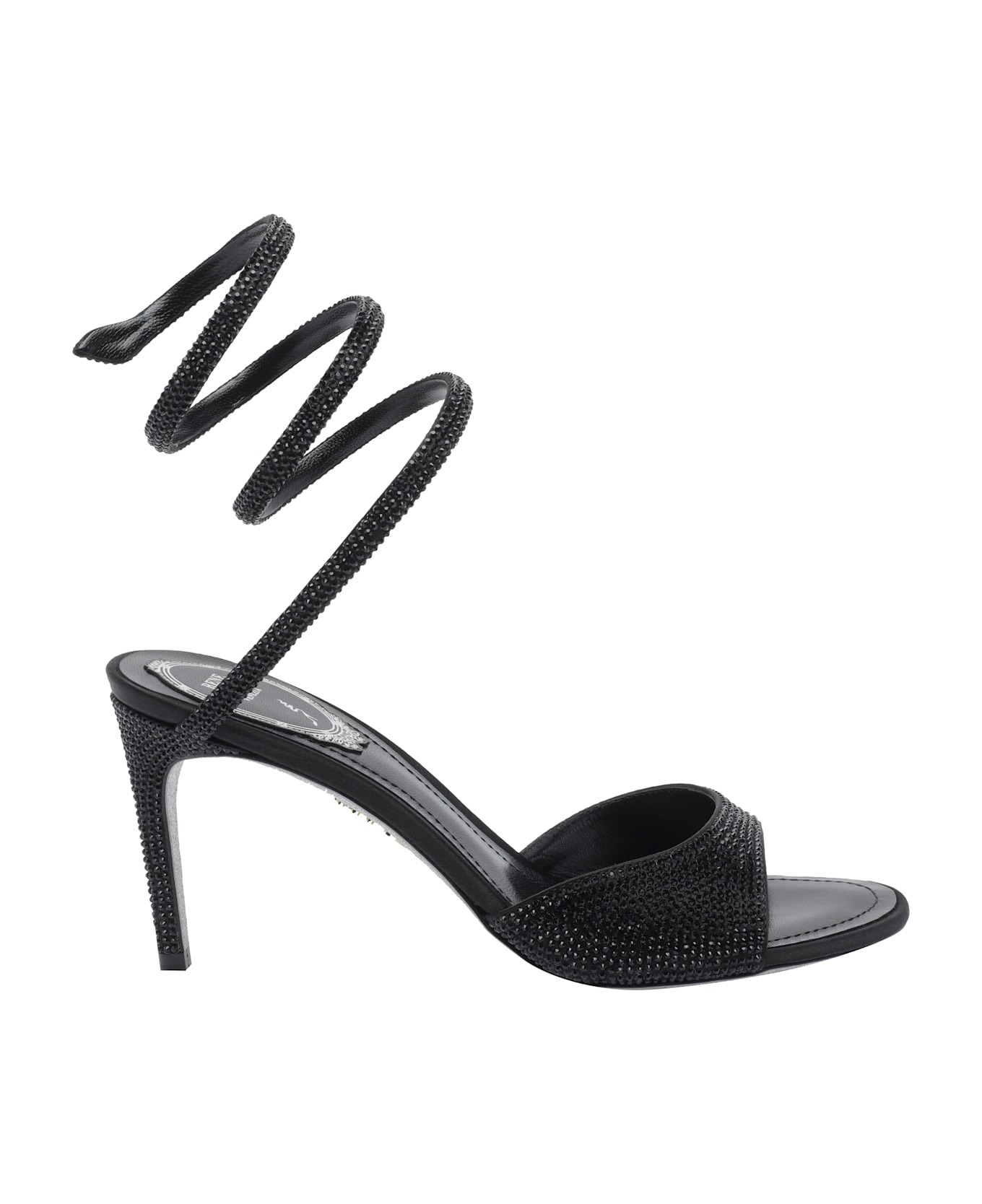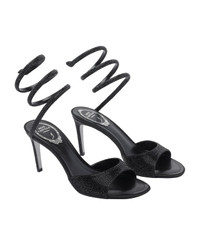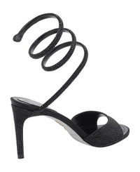 Rene Caovilla heeled sandals, open toe, crystal detail, crystal upper, leather sole Composition: 100% Calf Leather And Crystal Strass/leather Sole Made in: Italy Color: Black Size and fit: - heel 10 cm. Model number: C12608080R001V050