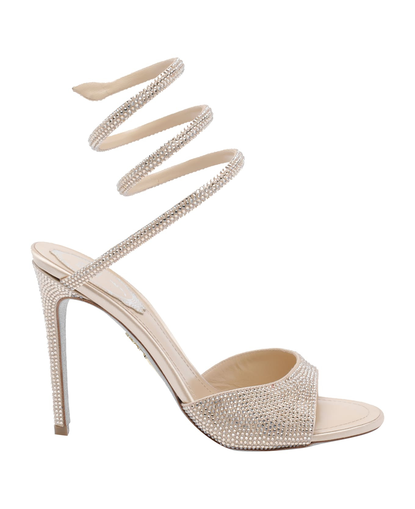 Rene Caovilla heeled sandals, open toe, crystal sandals, fabric upper, leather sole Composition: 100% Fabric Crystal Strass/leather Sole Made in: Italy Color: Beige Size and fit: - Heel 10,5 cm Model number: C12608105R001V104