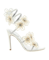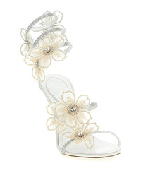 'Peach Flower' satin sandals with all-over rhinestone applique and flowers embroidered in tulle with crystals, band wrapping around the ankle, heel, stardust sole. Composition: 100% satin Made in: Italy Color: White Size and fit: - EU WOMAN - Heels: 10.5 cm Model number: C12476105R001Y341