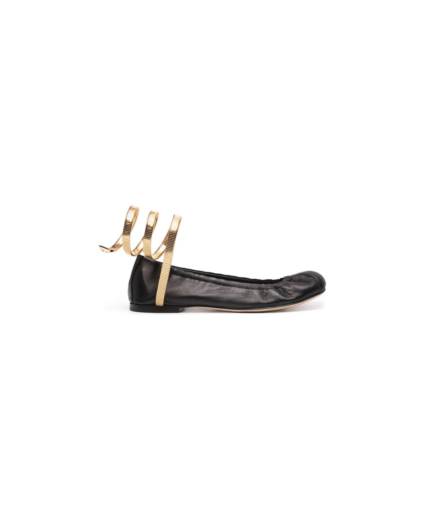black lambskin smooth grain snake motif crystal embellishment square toe wraparound ankle branded leather footbed flat leather sole This piece comes complete with a protective dust bag. Made in: Italy Color: BLACK/GOLD Model number: C12186NA01V017