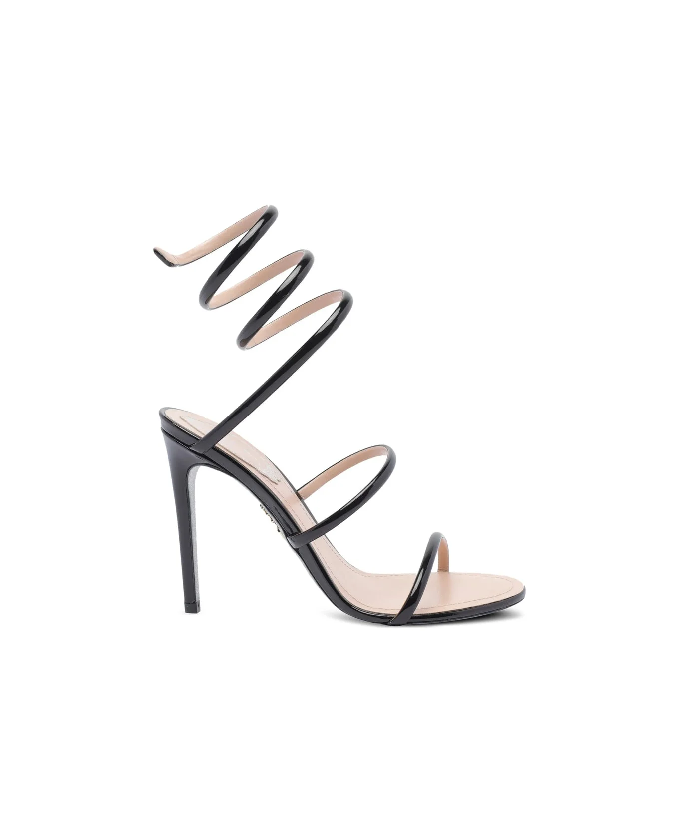 black patent leather spiral ankle wrap stiletto heel open toe Made in: Italy Color: BLACK Size and fit: - heel: 10.5 centimetres Model number: C1235100019999