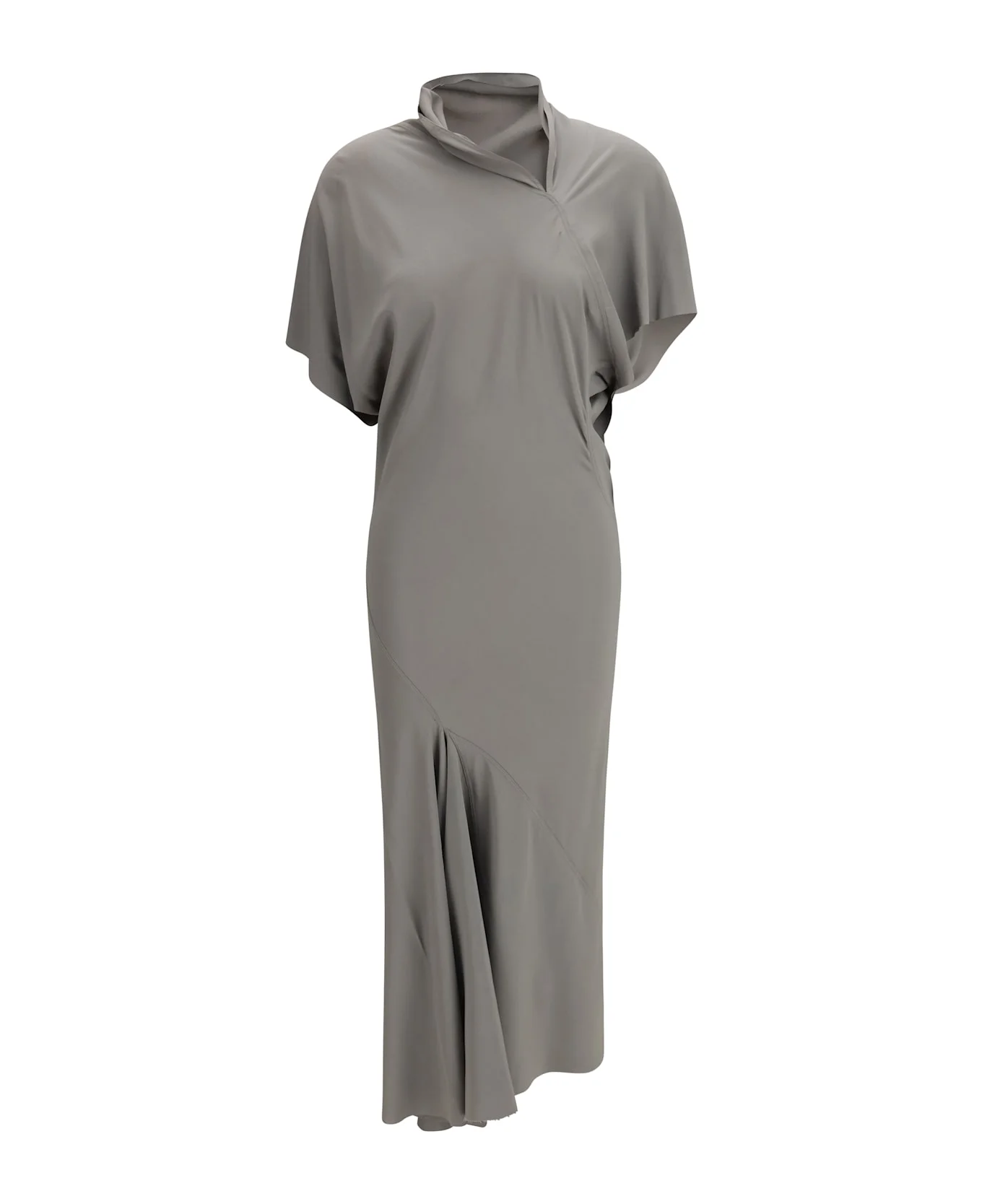 The asymmetrical midi dress by rick owens is a bold and contemporary piece, crafted from a refined blend of acetate and silk. the exclusive silhouette, midi or long, features a striking contrast: a wide sleeve on one side and a fitted cut on the other, for a visually striking effect. the high, gathered neckline adds a touch of sophistication, completing a sculptural and distinctive design. Composition: 64% % Acetate, 36% % Silk Made in: Italy Model number: RP01F654335