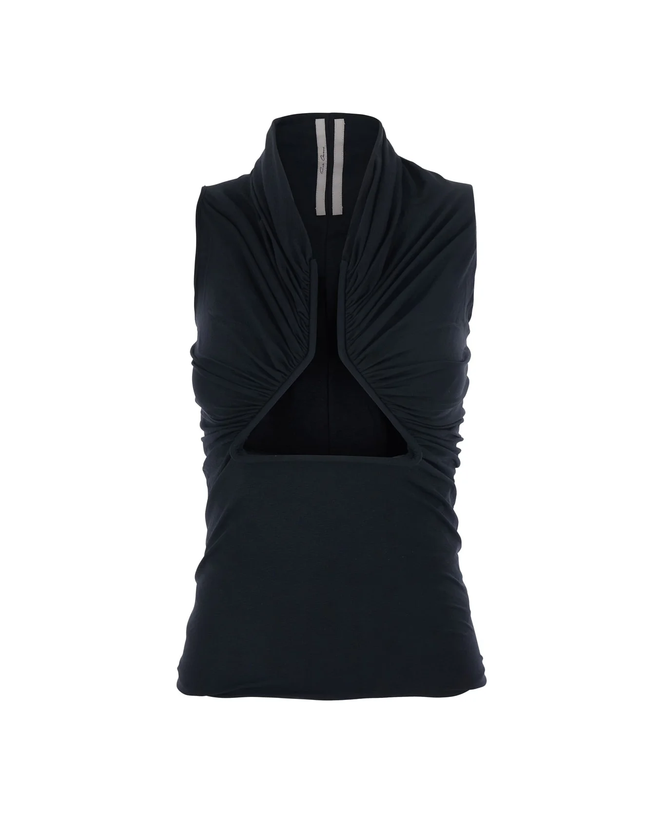 Top Black Stand up collar Sleeveless Front slit Gathered design Straight hem Fabric Slim fit Composition: 91% Nylon 9% Elastane Made in: Italy Color: Black Model number: RP01F6223JNDB09