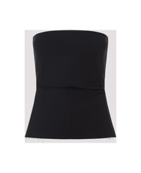 Rick Owens Black Wool Bustier Top. Crafted in wool, polyamide and elastane blend. Strapless, squared neck, band design, sleeveless, back zipped fastening, bustier style, straight hem, tonal stitching. Made in: Italy Color: Black Model number: RP02E4127WST09