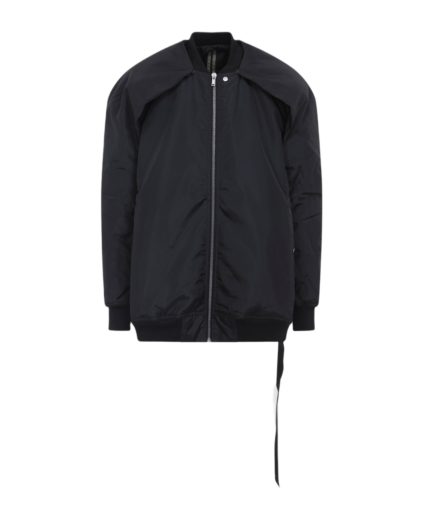 Rick Owens Drkshdw Black Convertible Jumbo Jacket. Crafted in polyamide fabric, ribbed bowling collar, front zipped fastening, side buttoned pockets, buttoned flap details on the shoulders, long sleeves, ribbed cuffs and hem, side tonal strap, straight hem. Made in: Moldova Color: Black Model number: DU02E7789NCV09
