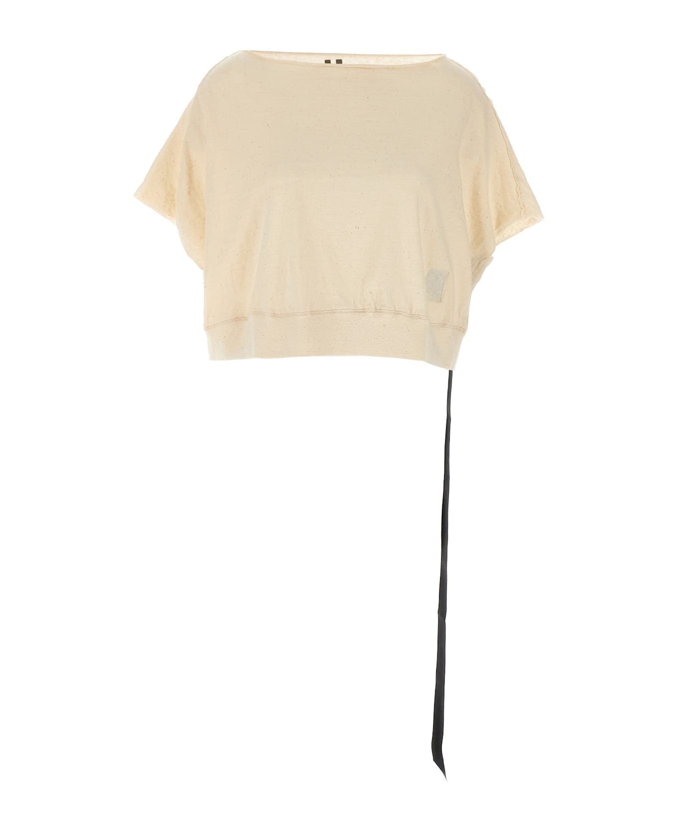 'Dagger' melange cotton top, crop model, raw cut hem, boat neck, dropped shoulder. Composition: 100% cotton Made in: Italy Color: Beige Size and fit: - oversized fit Model number: DS01E3243RNN21