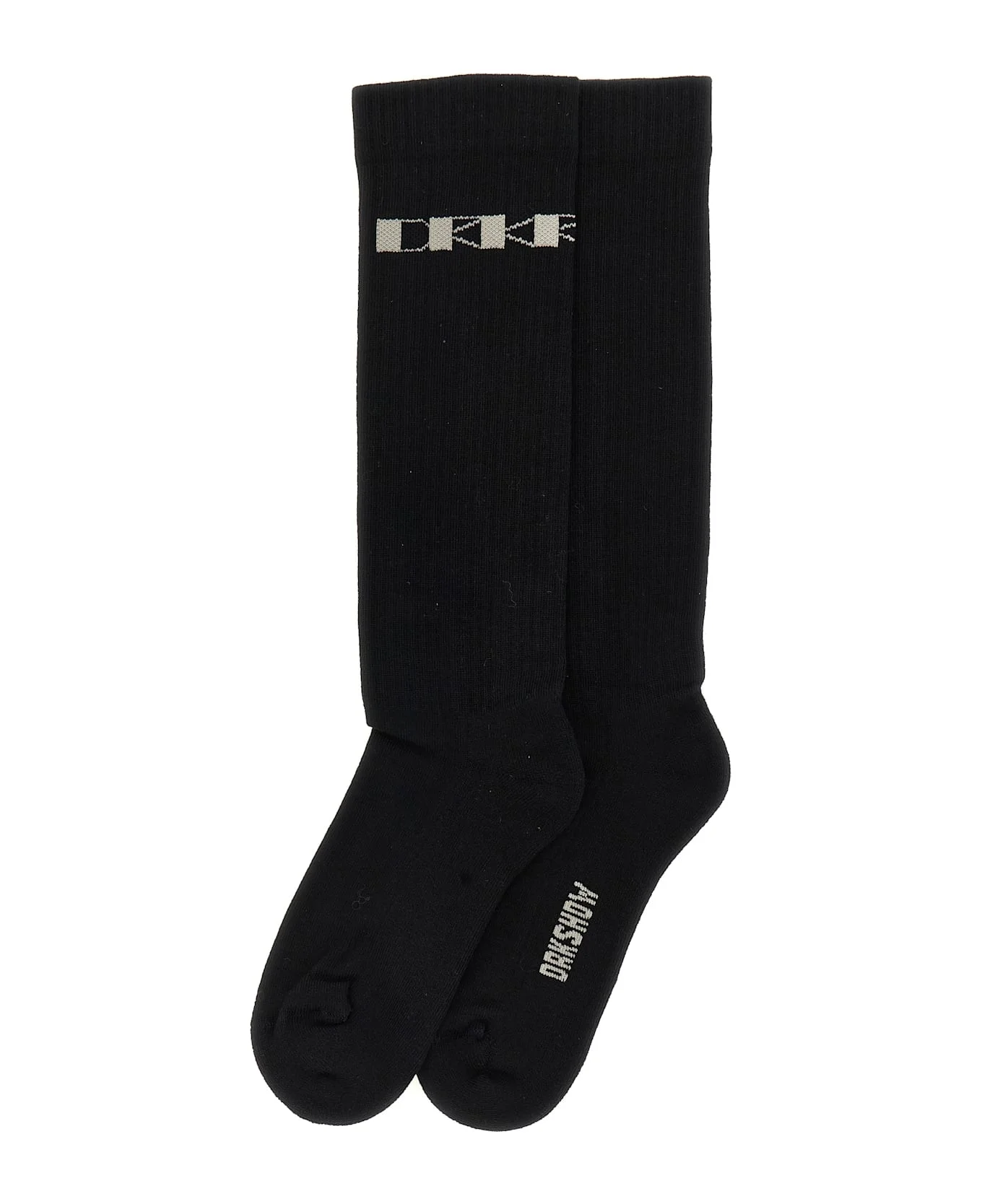 Ribbed stretch cotton socks with contrast jacquard logo intarsia. ITEM CANNOT BE RETURNED Composition: 60% cotton 30% nylon 10% elastane Made in: Italy Color: Black Size and fit: - true to size fit Model number: DA02E7469SOCKC908