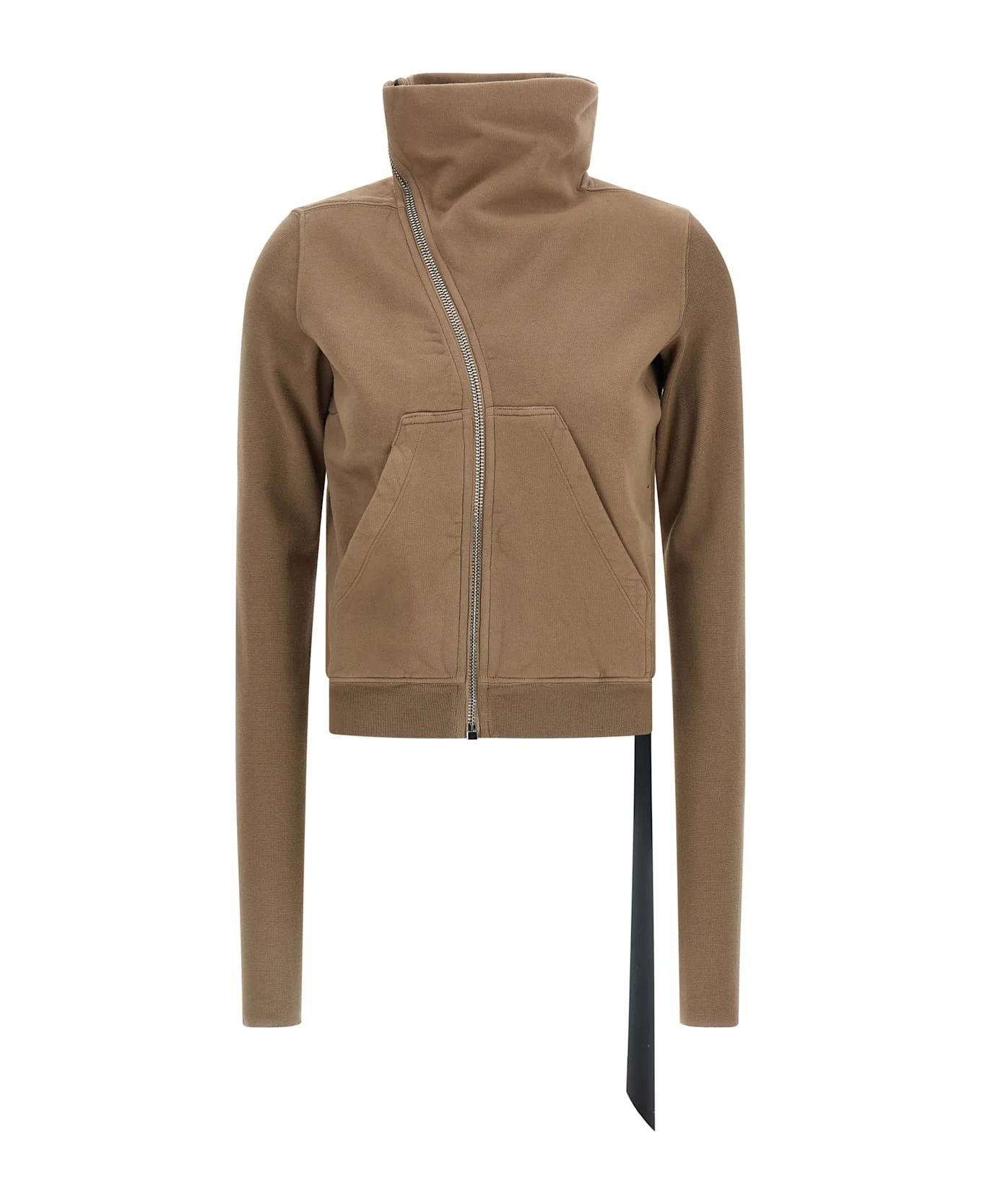 'Mountain Sweat' cropped cotton fleece sweatshirt, foldable high neck, front asymmetrical zip closure, pockets, long honeycomb cotton sleeves with raw cut sleeves and headband. Composition: 100% cotton Made in: Italy Color: Beige Size and fit: - true to size fit Model number: DS01F4239F64