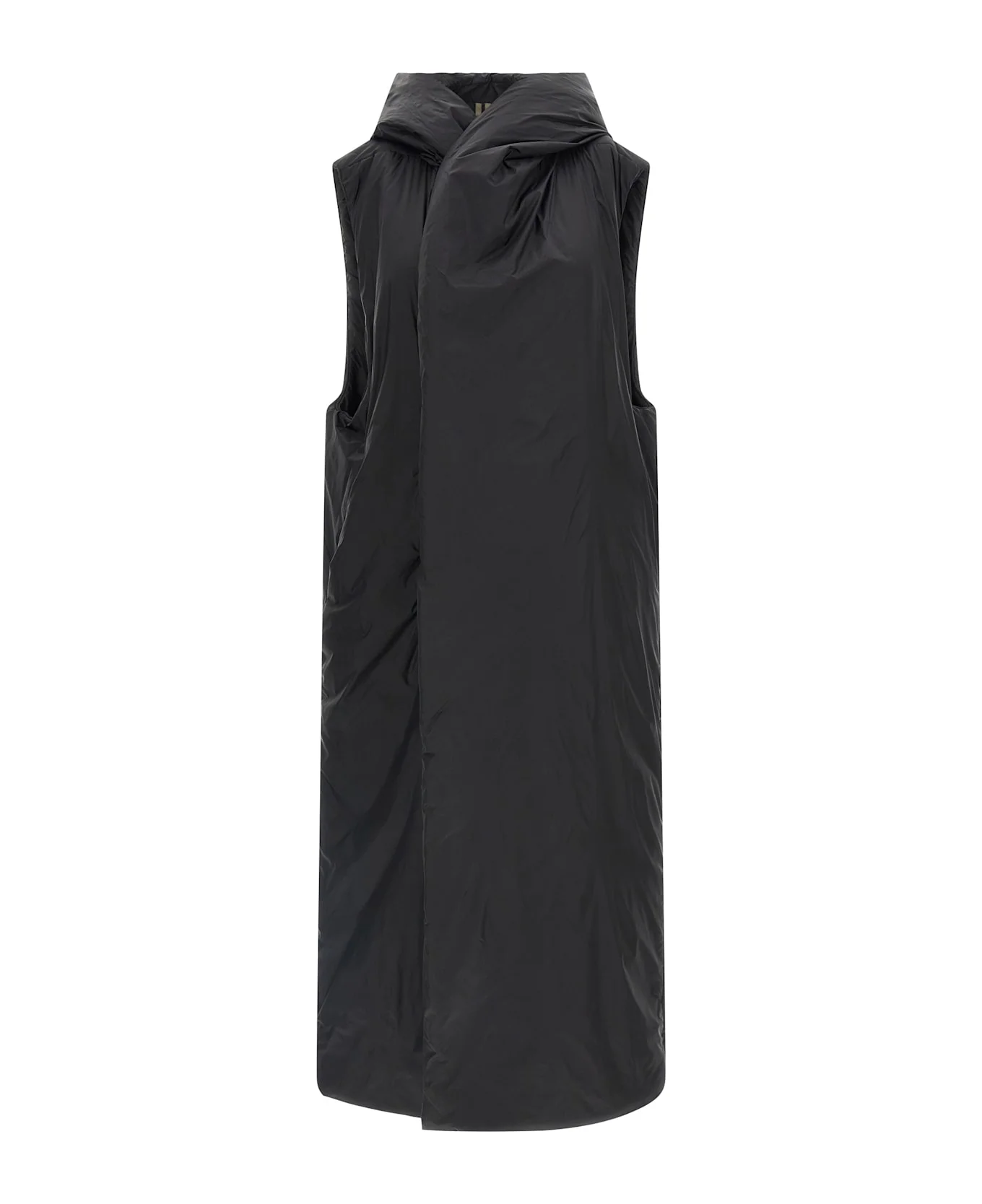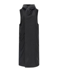 Padded nylon long vest, hood, high neck, front asymmetric snap button closure, pockets, tone-on-tone cotton tape with back rivets. SUSTAINABLE: Product made with recycled materials. Composition: 100% nylon Made in: Moldova Color: Black Size and fit: - Comfort fit Model number: DS02E7922NP09