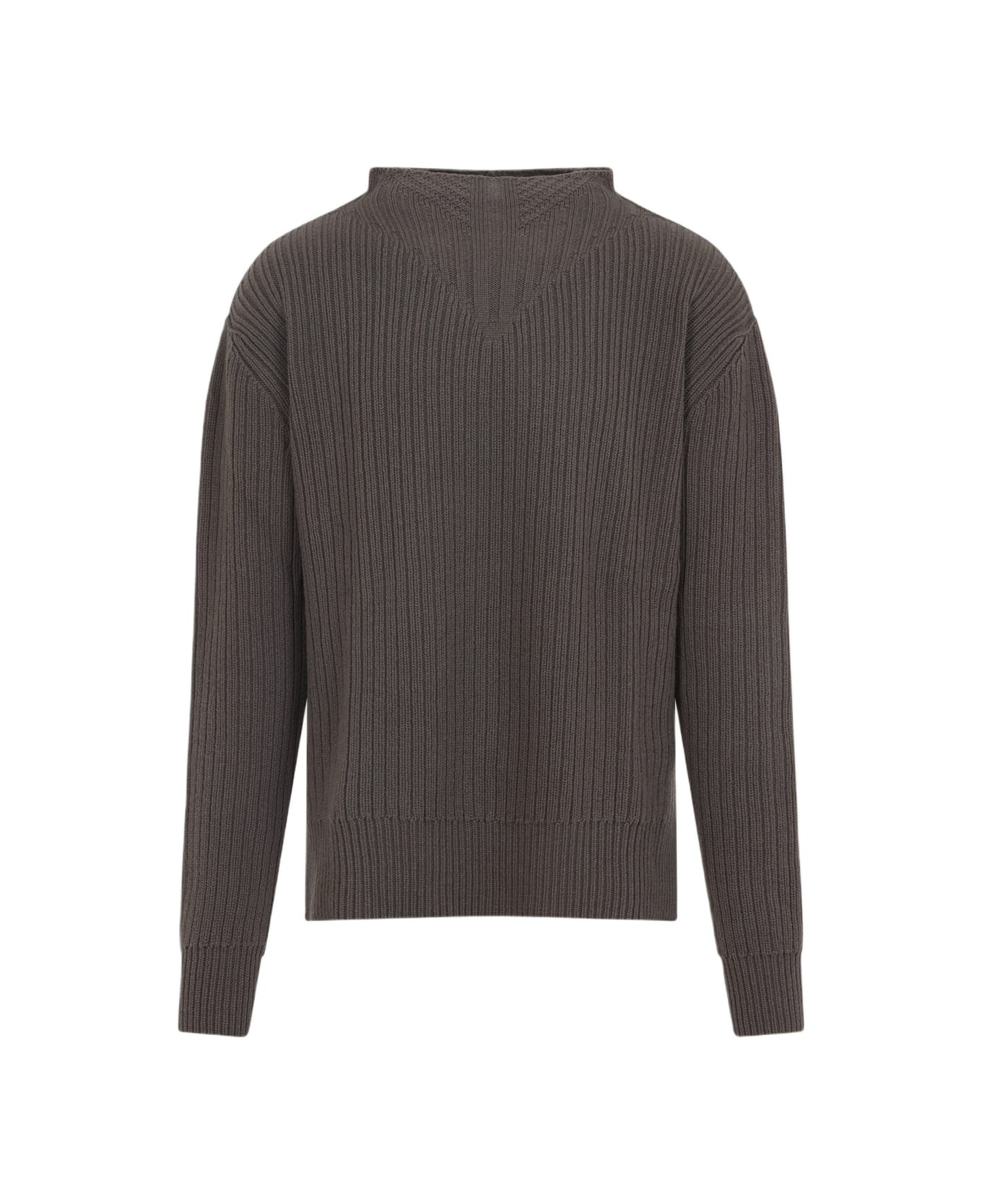 Rick Owens Dust Grey Virgin Wool Fisherman Round Neck Pullover. Pure dust grey virgin wool pullover, round neck, dropped shoulders, long sleeves, straight hem, ribbed all-over. Made in: Italy Color: Dust Model number: RU02E1649KWV34