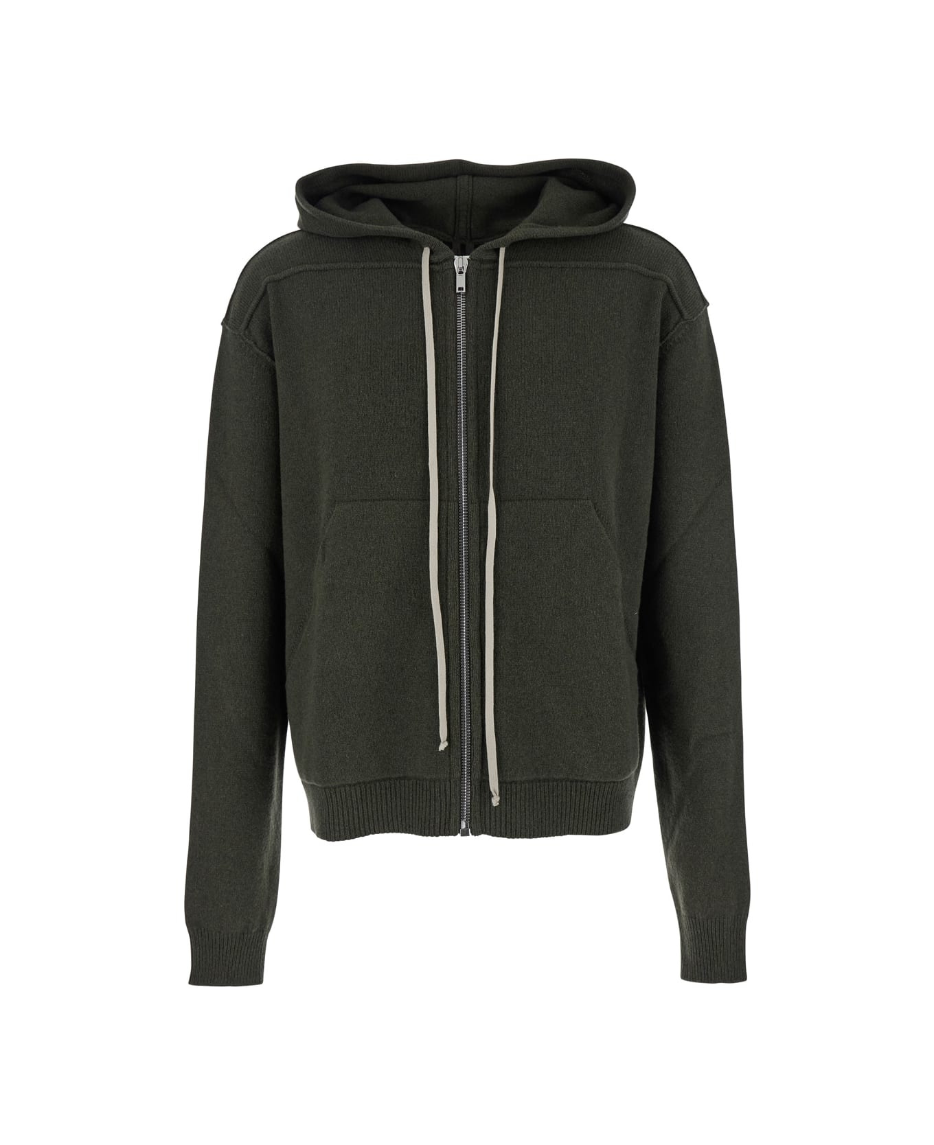 Sweatshirt Green Contrasting drawstring hood Long sleeves Front zip closure One kangaroo pocket on the front Straight hem Ribbed trims Cashmere and wool Regular fit Composition: 97% Cashmere 3% Wool Made in: Italy Color: Green Model number: RU02E1614WSBR25