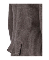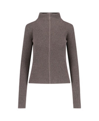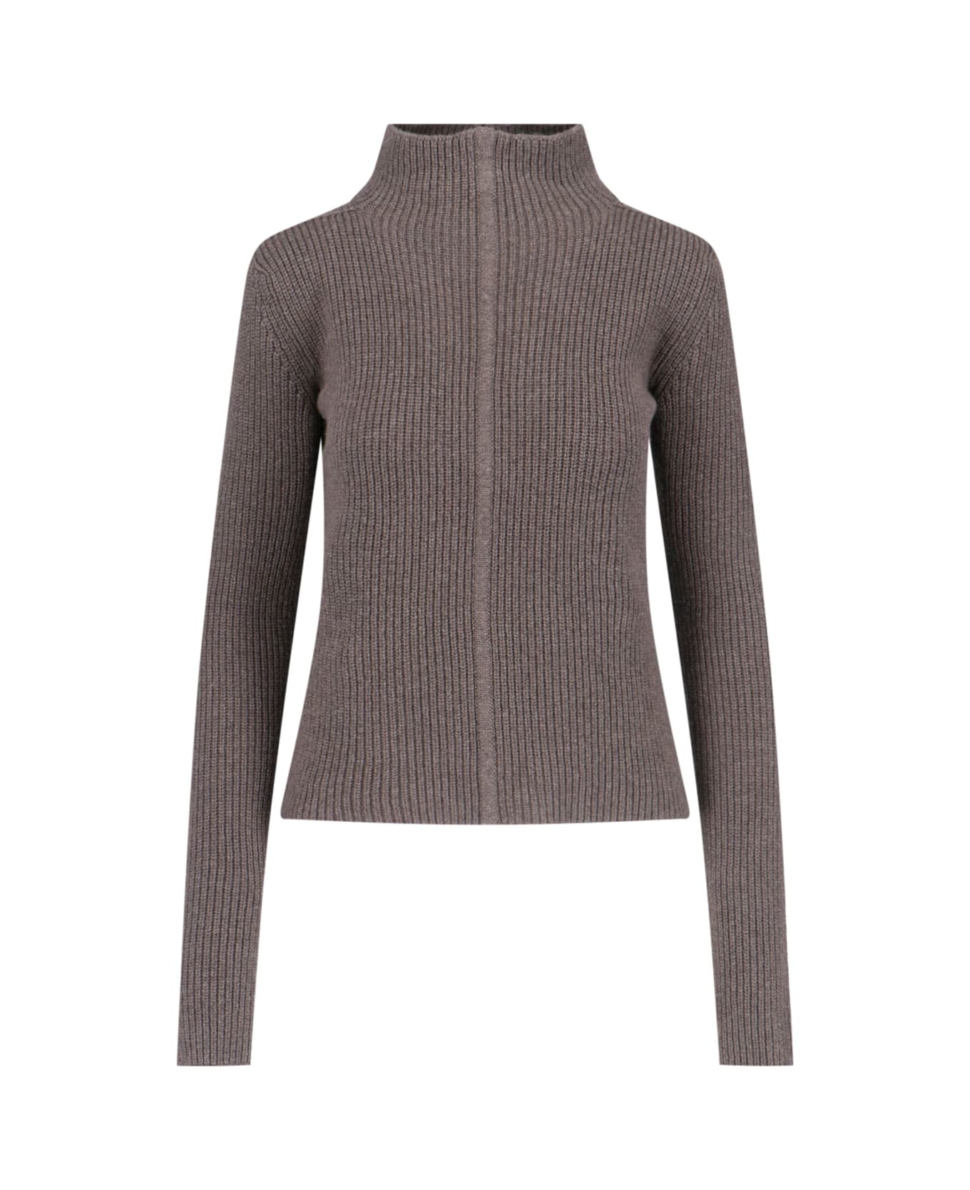 Rick Owens 'Headon DBL Lupetto' sweater in brown cashmere and wool with ribbed knit, high neck, tonal embroidery on the front, cropped convertible design with second neck on the back, straight hem. Composition: 97% Cashmere, 3% Wool Made in: Italy Color: Brown Size and fit: - vestibilita regolare Model number: RO02D3676WSBRL34