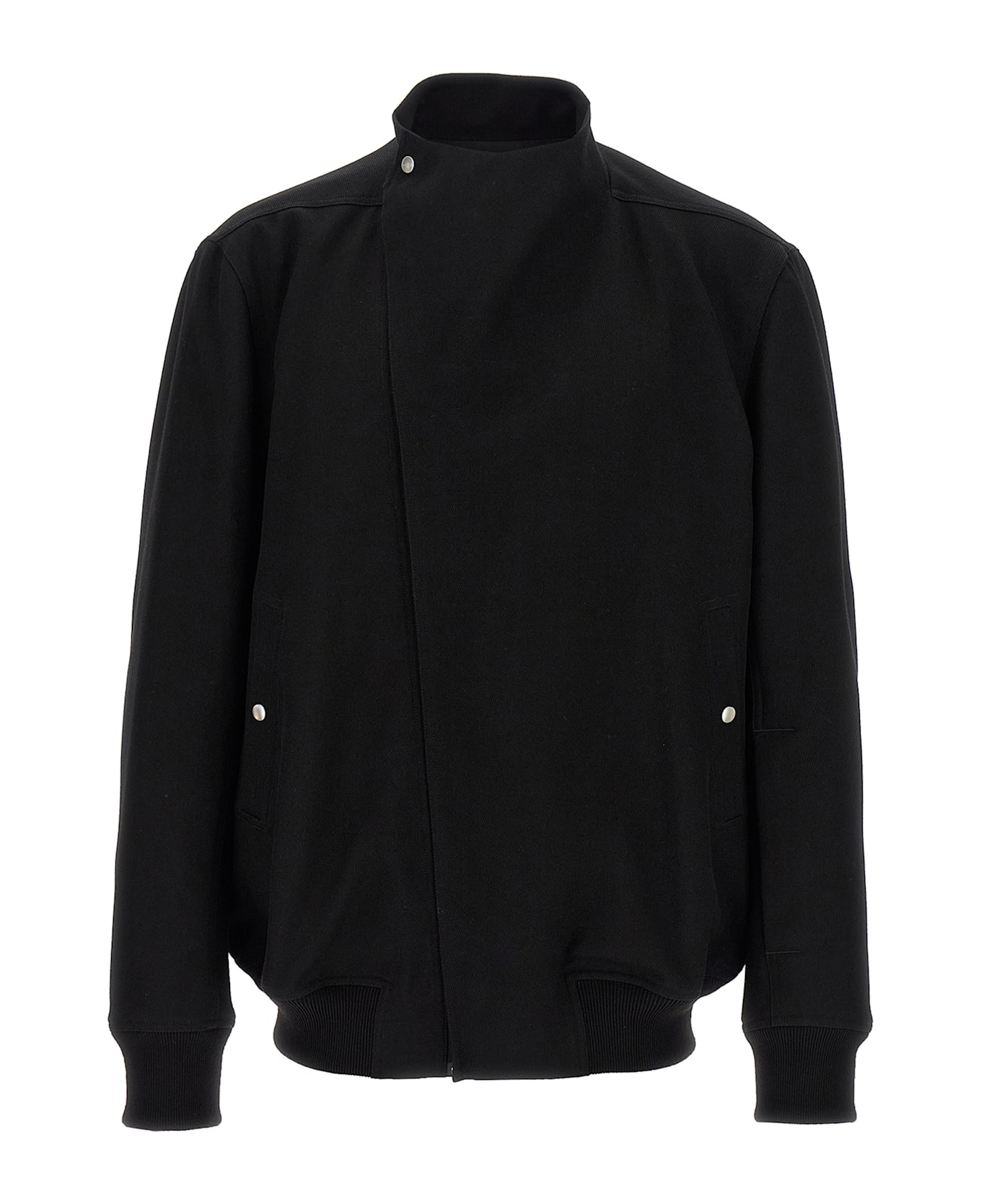 'Hollywood Flight' heavy cotton bomber jacket with stretch ribbed cotton knit details, lining, zip closure and oblique front snap button, pockets, long cuffed sleeves. Composition: 97% cotton, 3% elastane Made in: Italy Color: Black Size and fit: - oversized fit Model number: RU02E1760WD09