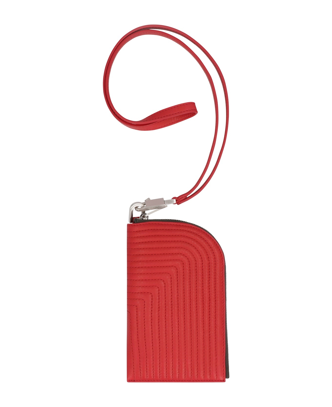 Calf leather item decorative stitching top zippered closure removable leather strap silver-tone metal hardware leather lining width: 11 cm height: 18 cm depth: 1,5 cm strap: 50 cm 100% calf Composition: 100% % Calf Made in: Italy Color: red Model number: RA01D0411LCNQ103