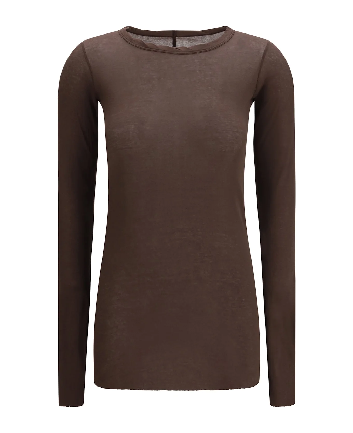 The long-sleeved t-shirt by rick owens is hip-length and has a slim fit that follows the silhouette. the ribbed crew neck, raw-cut hem, and cuffs add a distinctive, modern touch. the single seam detail running down the center back is the designer's signature, making this t-shirt a unique and unmistakable piece. perfect for a minimalist yet avant-garde look. Composition: 100% % Cotton Made in: Italy Model number: RP01F620253