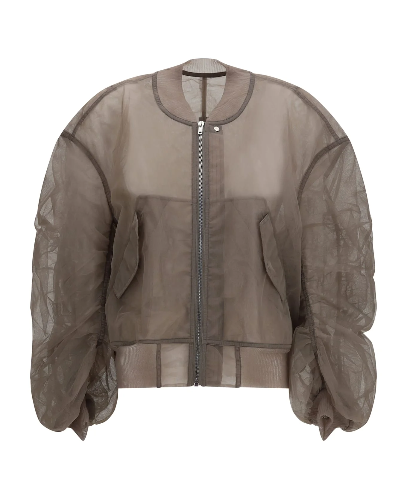 The secchia flight bomber jacket in recycled tulle from the ss26 collection by rick owens stands out for its oversized silhouette with an experimental and contemporary character. the rick owens secchia flight jacket features long gathered sleeves and ribbed trims at the neck, cuffs and waistband that define the silhouette. the front centre zip closure with a top snap button adds a functional detail, while the front side snap-closure pockets add practicality. the garment is crafted from lightweight, sheer recycled nylon tulle with a stiff hand feel, made using grs-certified recycled polyamide to reduce water consumption, emissions and hazardous waste. the rick owens secchia flight completes the design with a distinctive and sustainable aesthetic. Composition: 100% % Nylon Made in: Italy Model number: RO01F6744TU34