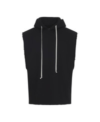 Rick Owens SL Black Cotton Hoodie. Sleeveless hoodie crafted from black brushed cotton, featuring a hood with signature long drawstring, raw-cut edges on the deep armholes and on the hem. Made in: Italy Color: Black Model number: RU01F2153JNT09