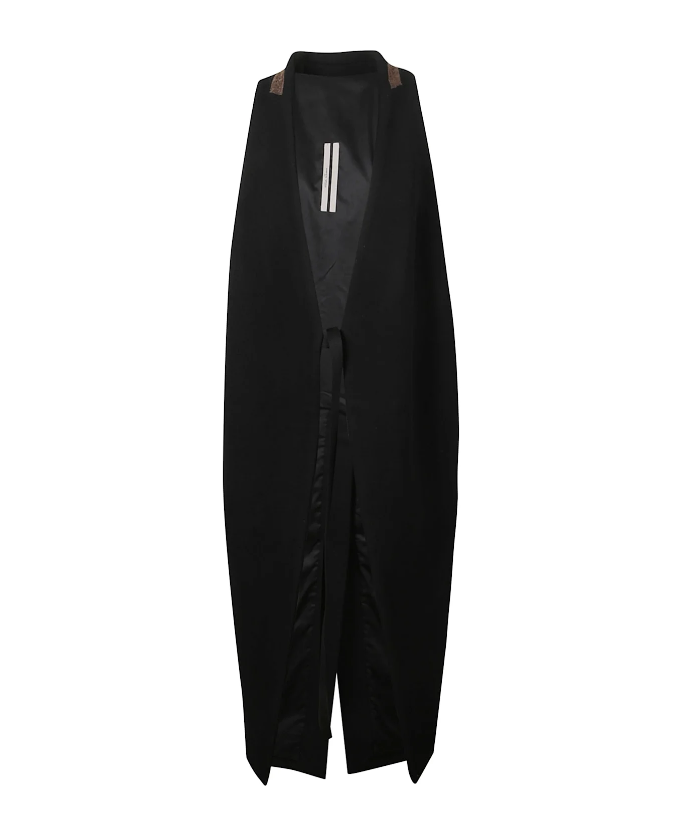Black coat by RICK OWENS featuring button fastening and sleeveless design. Composition: 100% New Wool Made in: Italy Color: Black Model number: RO02E4950WSF09