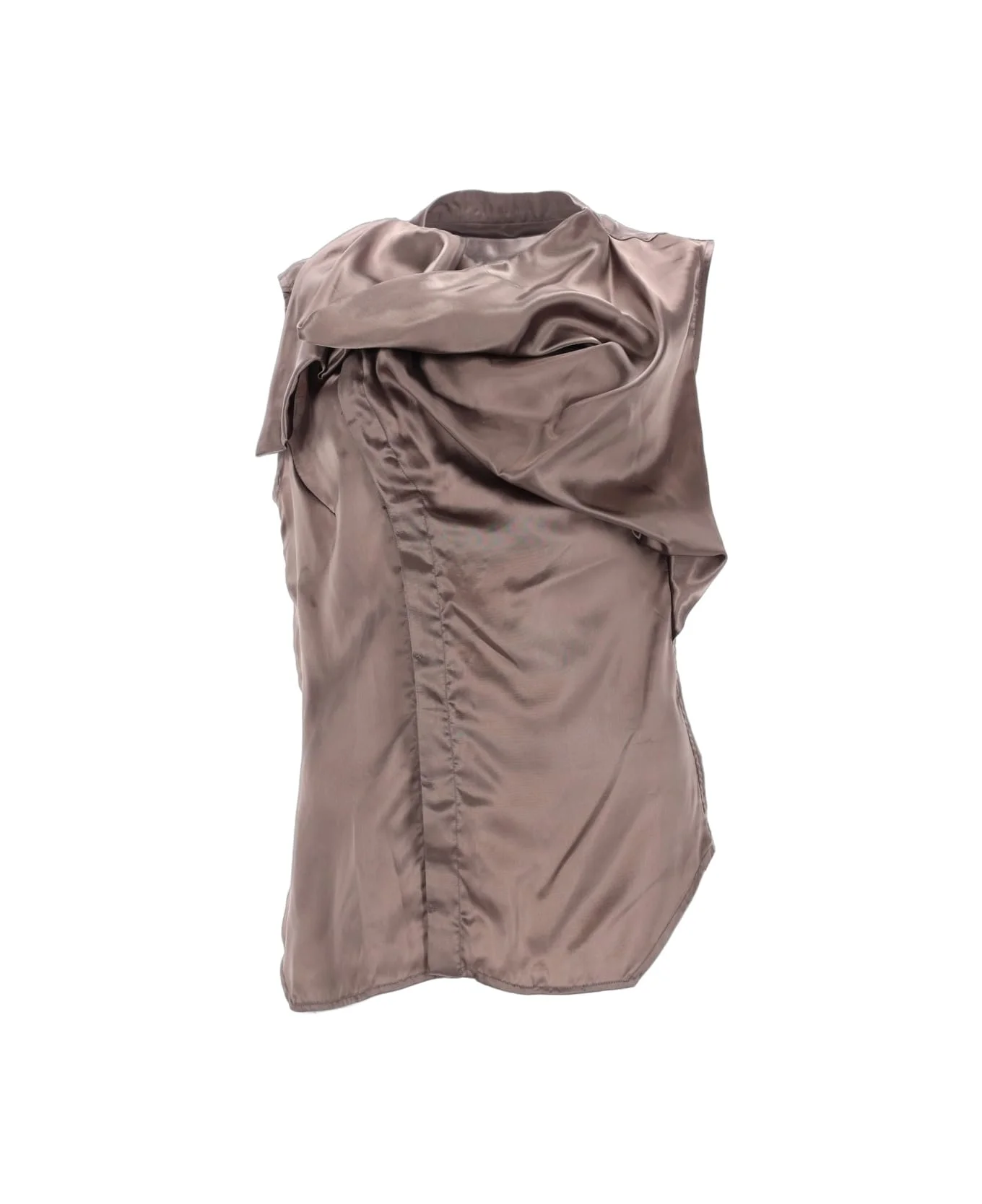 Island Draped Sleeveless Satin Shirt