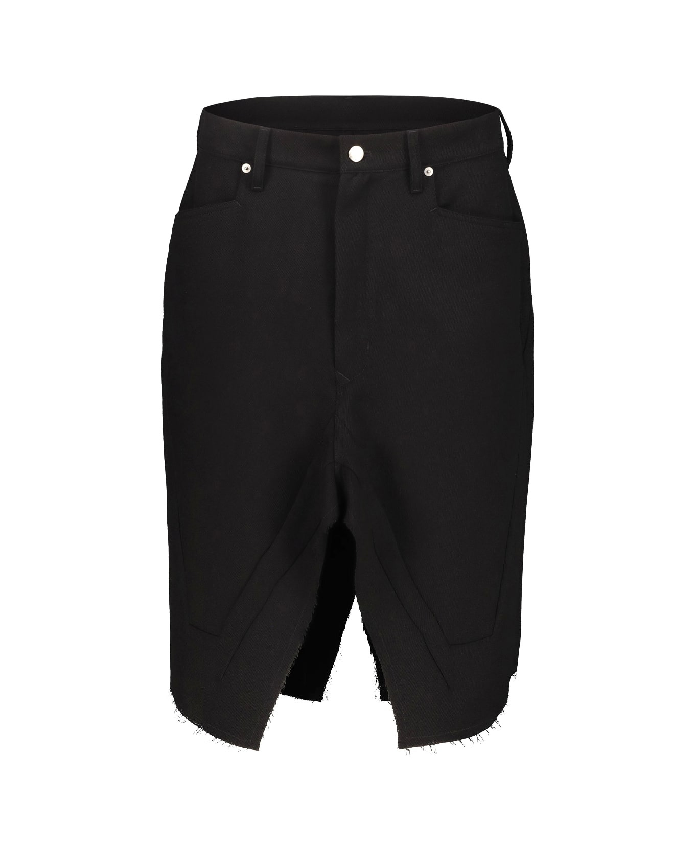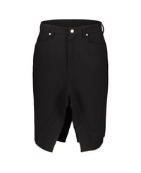 Rick Owens slivered wool skirt, flared, opening on the front, two side pockets and two patch pockets on the back, the structure is of a pair of trousers from which the inside leg seam has been unstitched. GTIN code: RP02E4377 WD Made in: Italy Color: Black Model number: RP02E4377WD