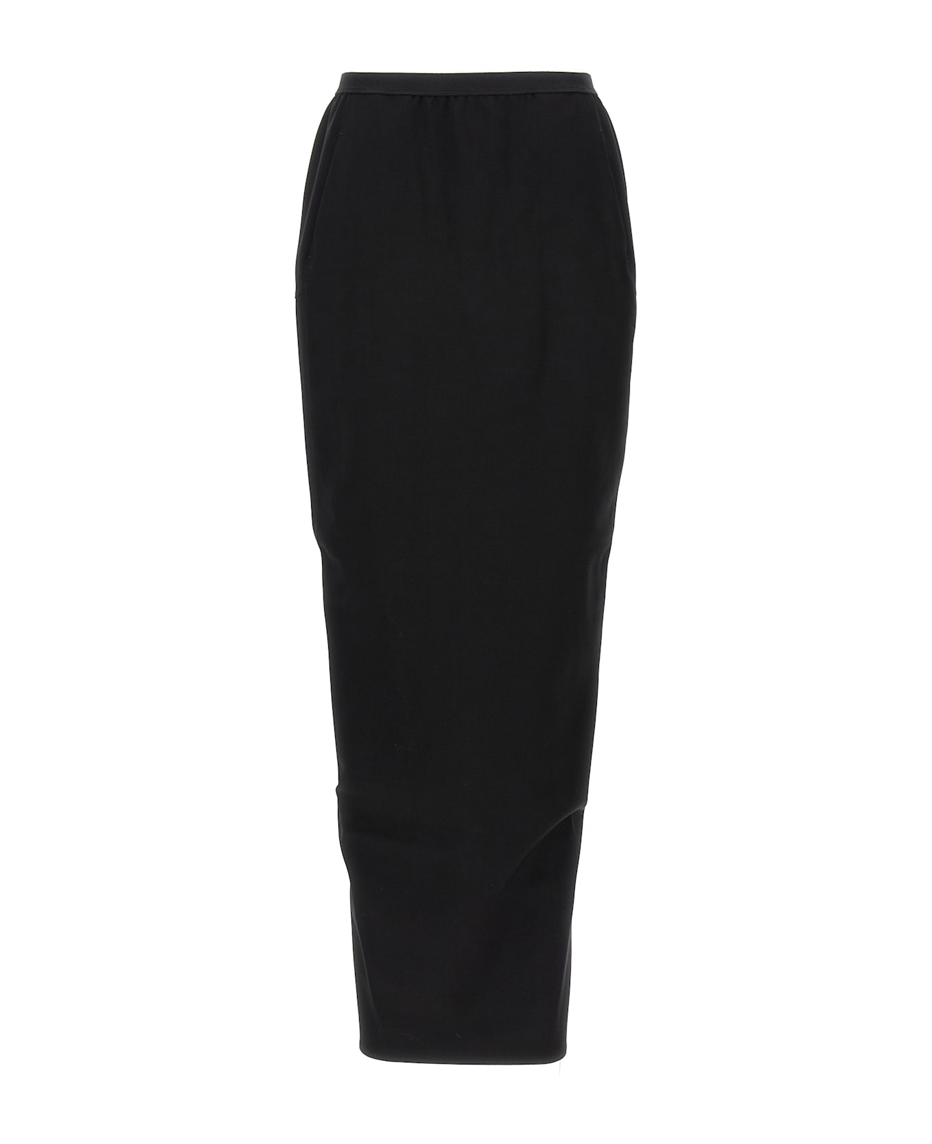 'Soft Pillar Long' skirt in wool blend, elastic waistband, asymmetrical, back split. Composition: 87% wool 10% nylon 3% elastane Made in: Italy Color: Black Size and fit: - True to size fit Model number: RP02E4331WST09