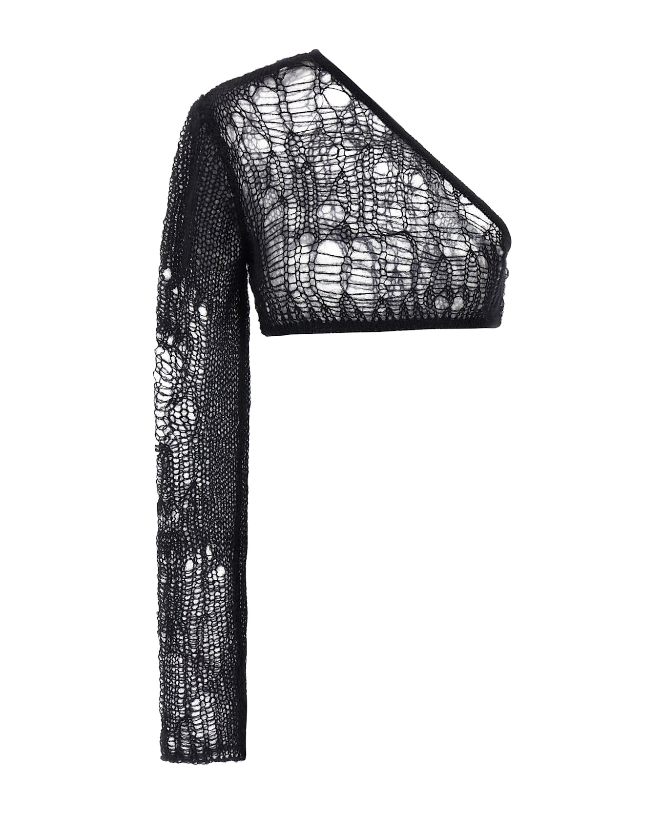 'Spider Ziggy' top in openwork mohair blend, one-shoulder model with long sleeves. Composition: 50% nylon 46% mohair wool 4% wool Made in: Italy Color: Black Size and fit: - true to size fit Model number: RP01E7610KNETMH09
