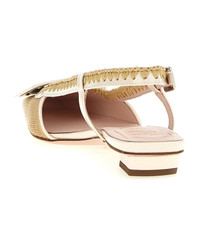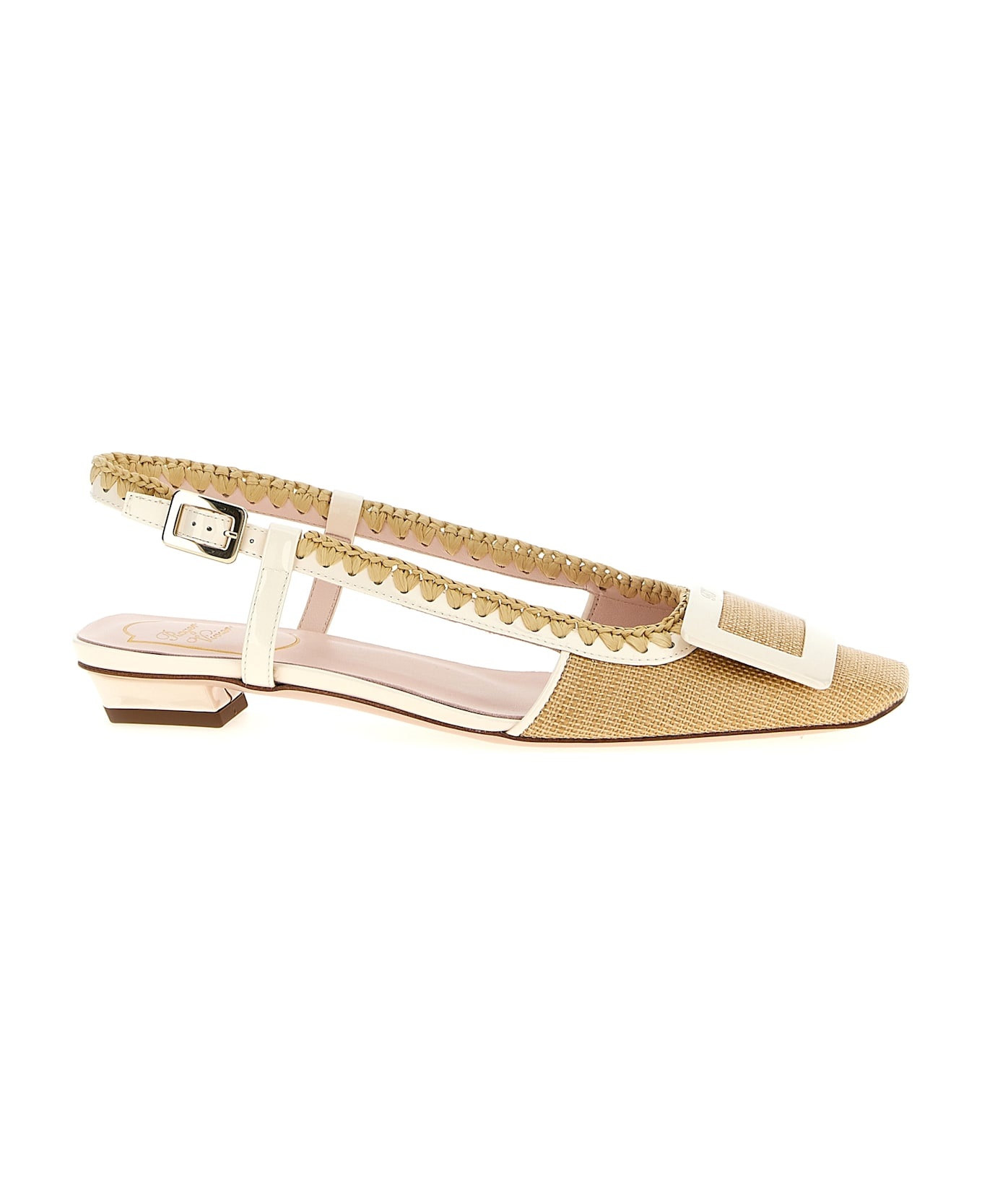 Belle Vivier 25 patent-leather and raffia slingback pumps Sand
